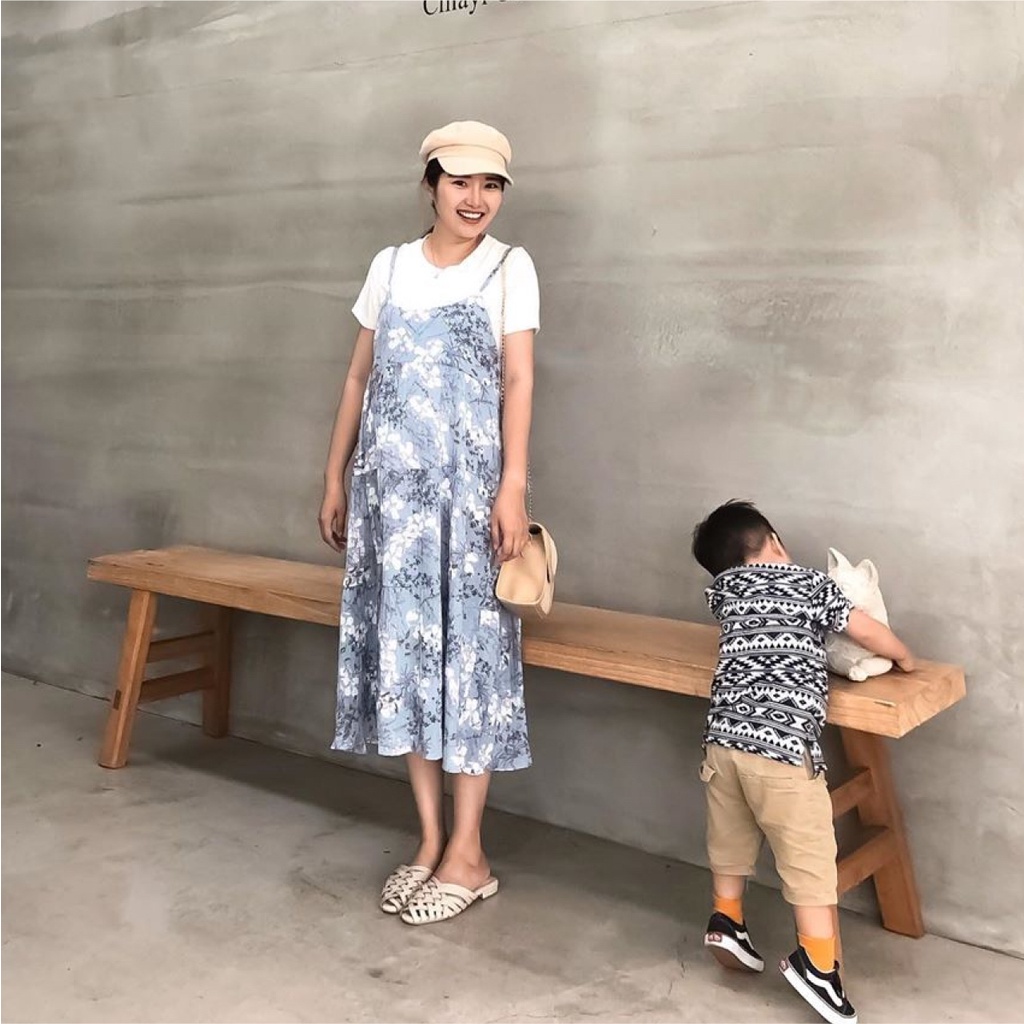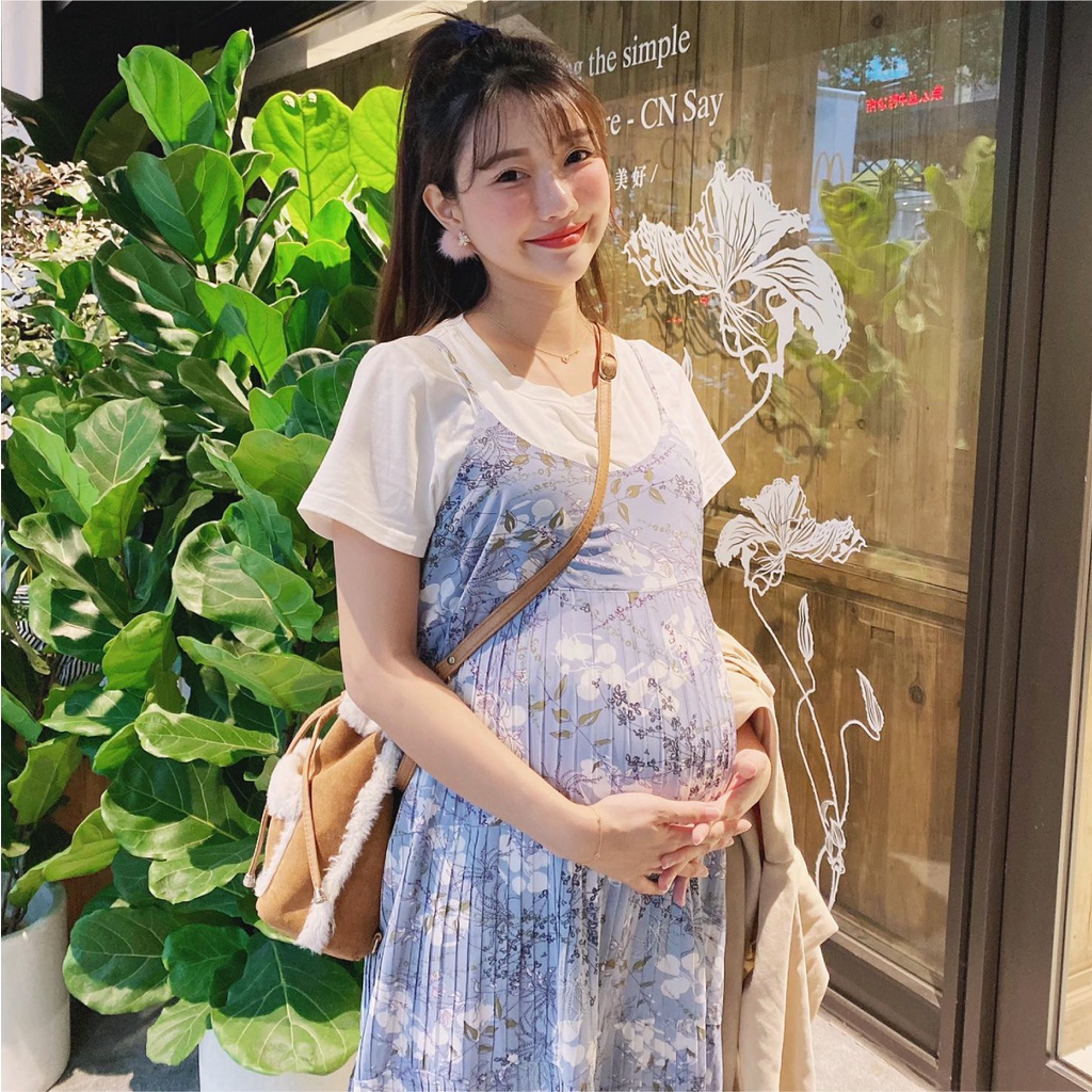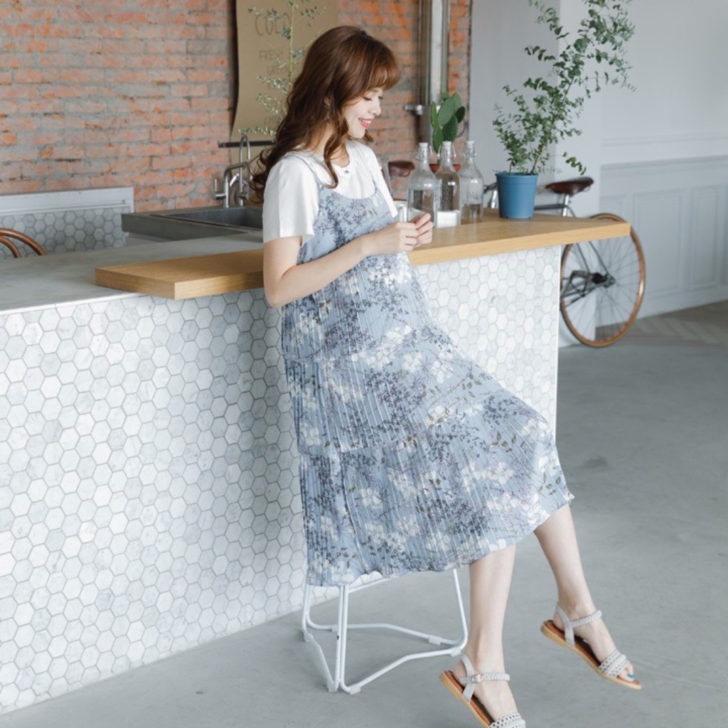 Mamamia孕婦裝 兩件式哺乳T+碎花雪紡吊帶哺乳洋裝 孕婦裝 孕婦裙 孕婦洋裝 喂奶衣 短袖[A1269]