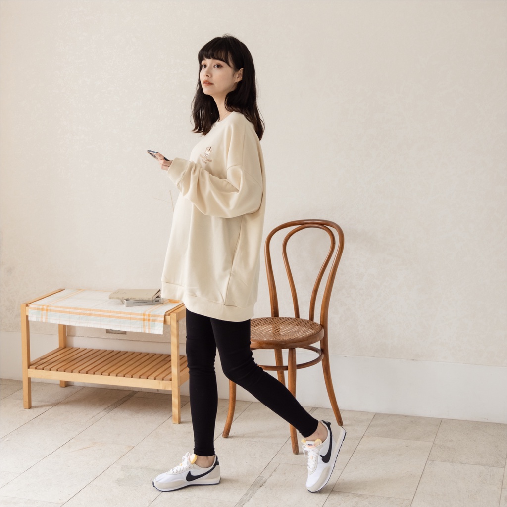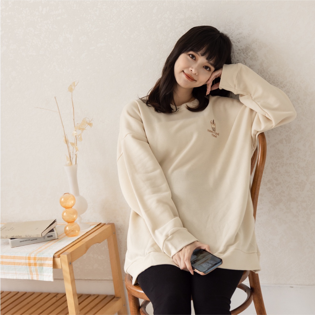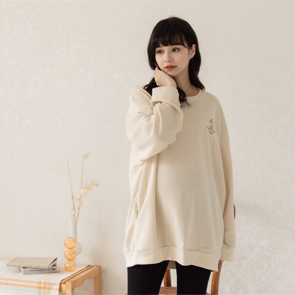 Mamamia孕婦裝 珍奶長版寬鬆大學T 長版上衣 孕婦上衣 長袖 寬T 孕婦裝 正韓製 百搭T [C3147]