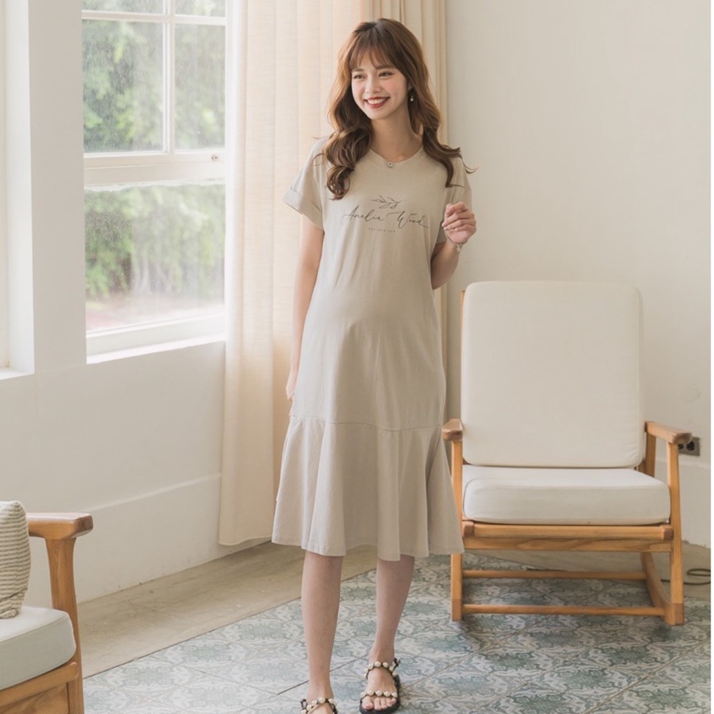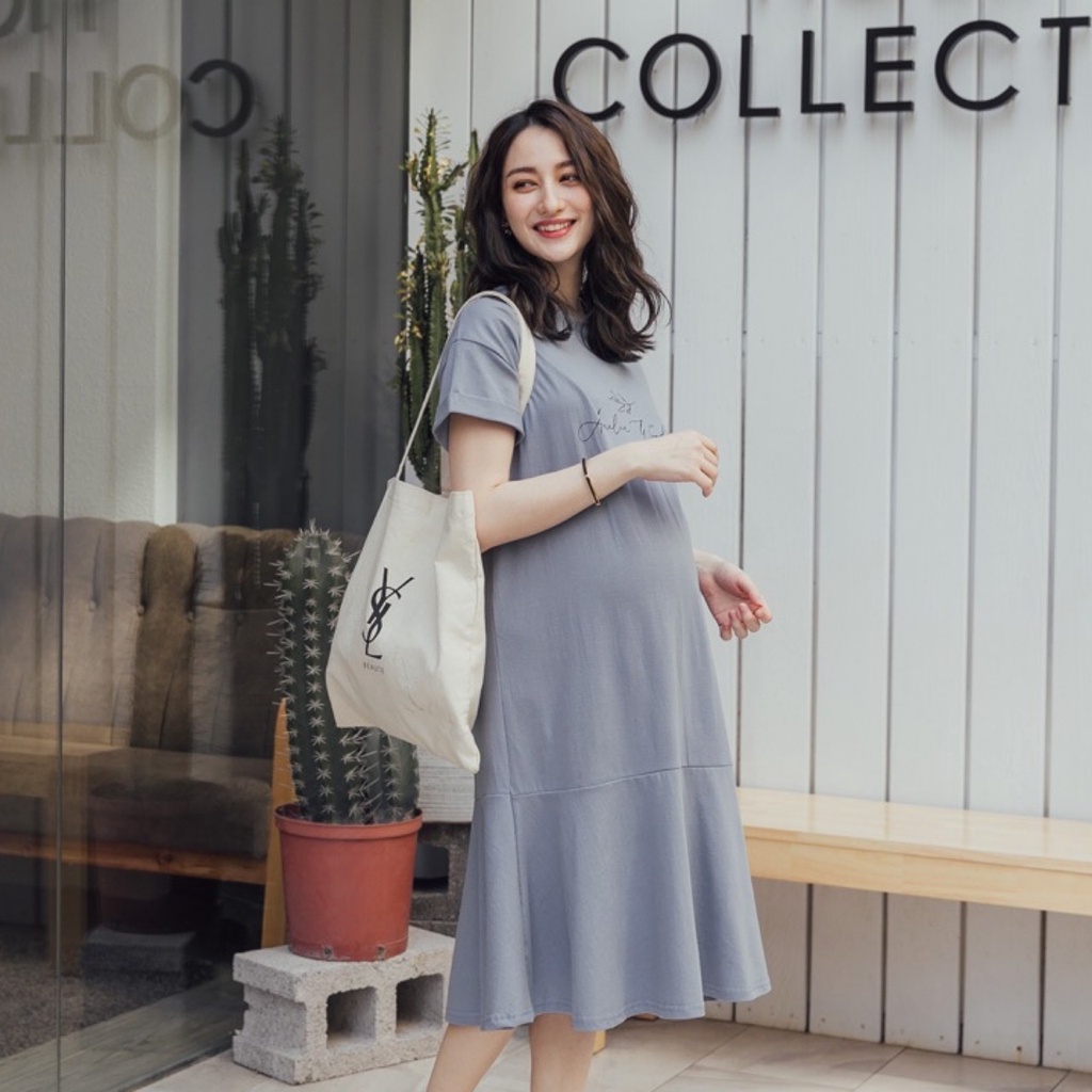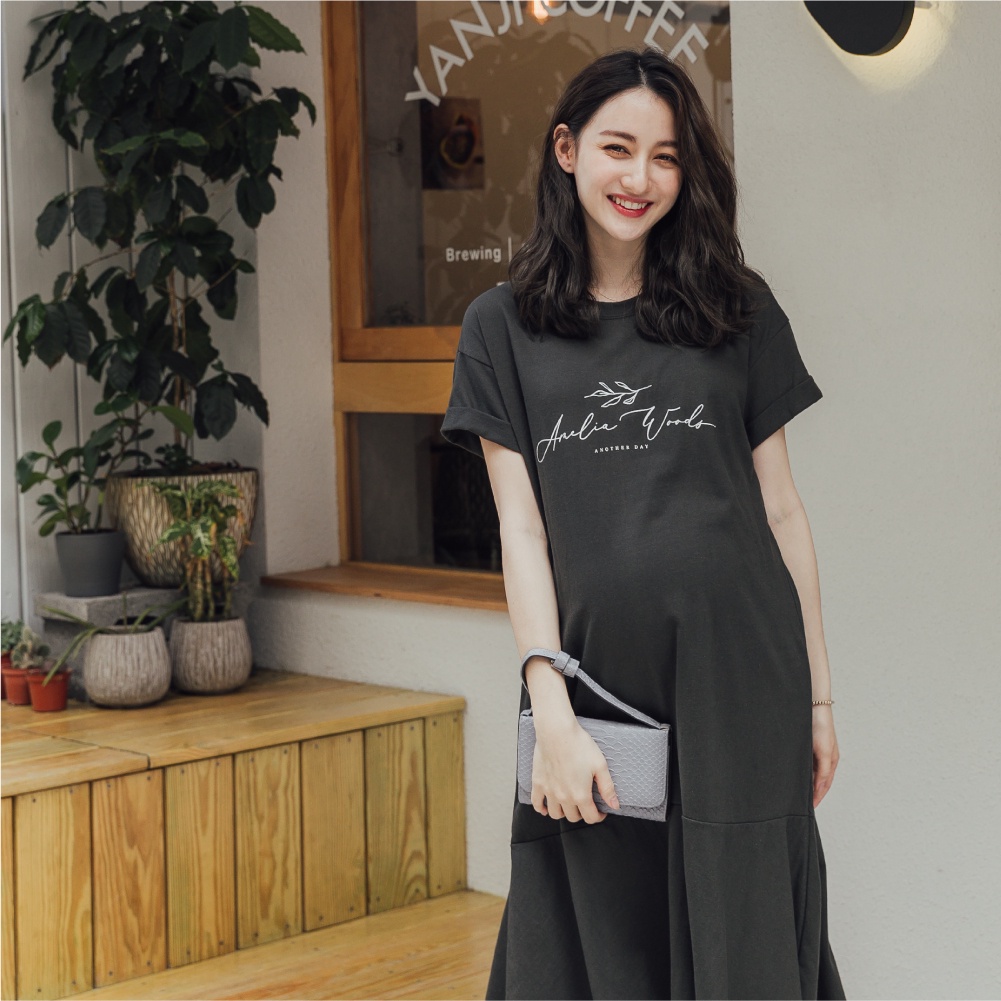 Mamamia孕婦裝 英文字反折袖魚尾洋孕婦裝 正韓製 短袖 孕婦裙 孕婦連身裙 連身洋裝 孕婦洋 [D7079]