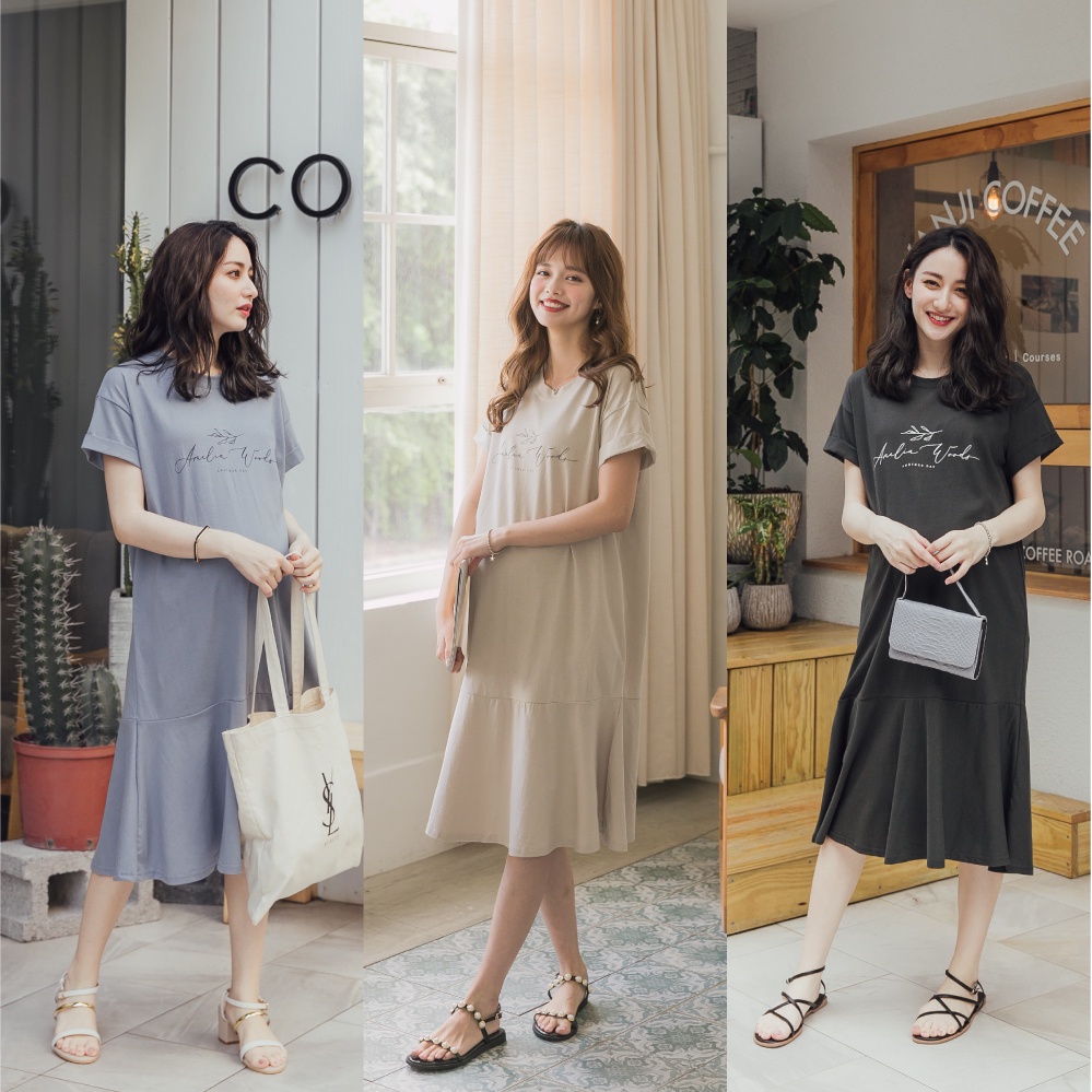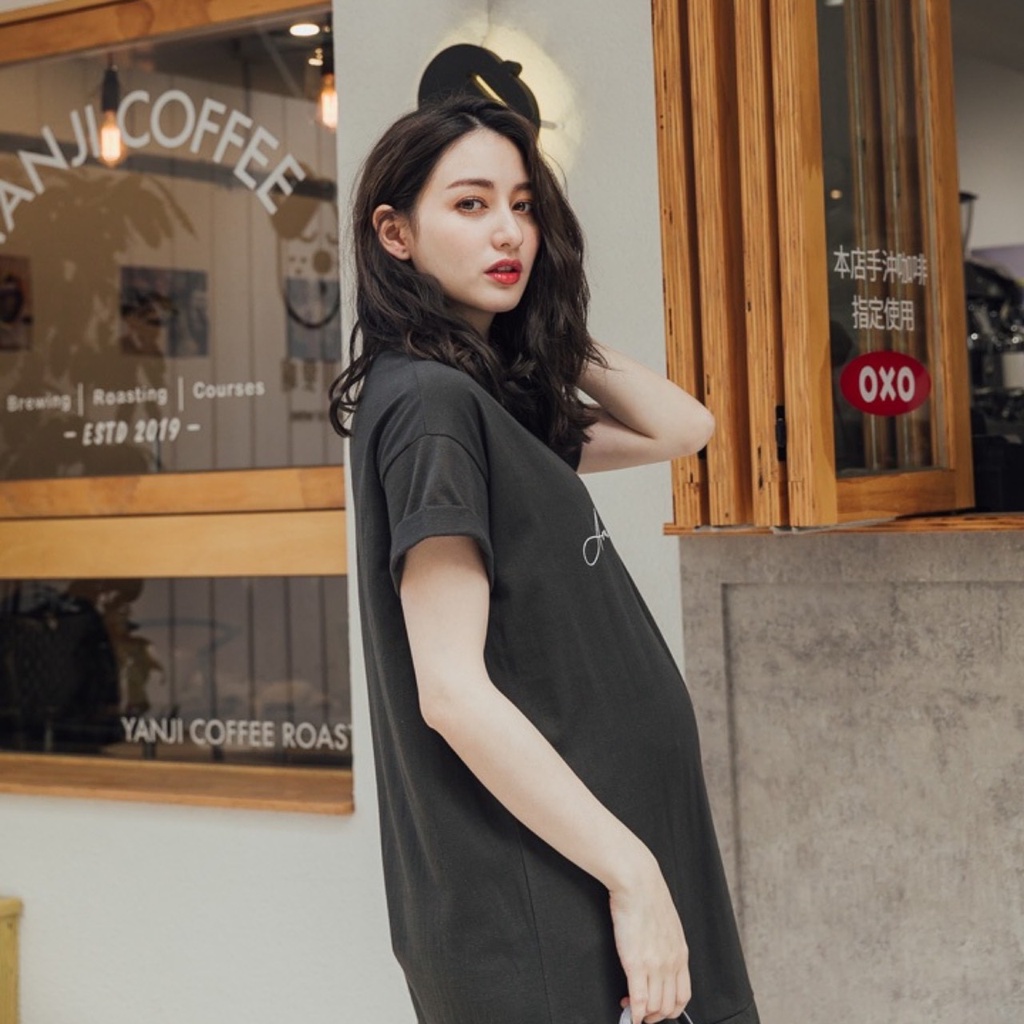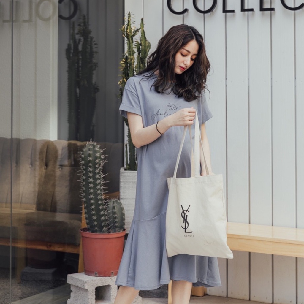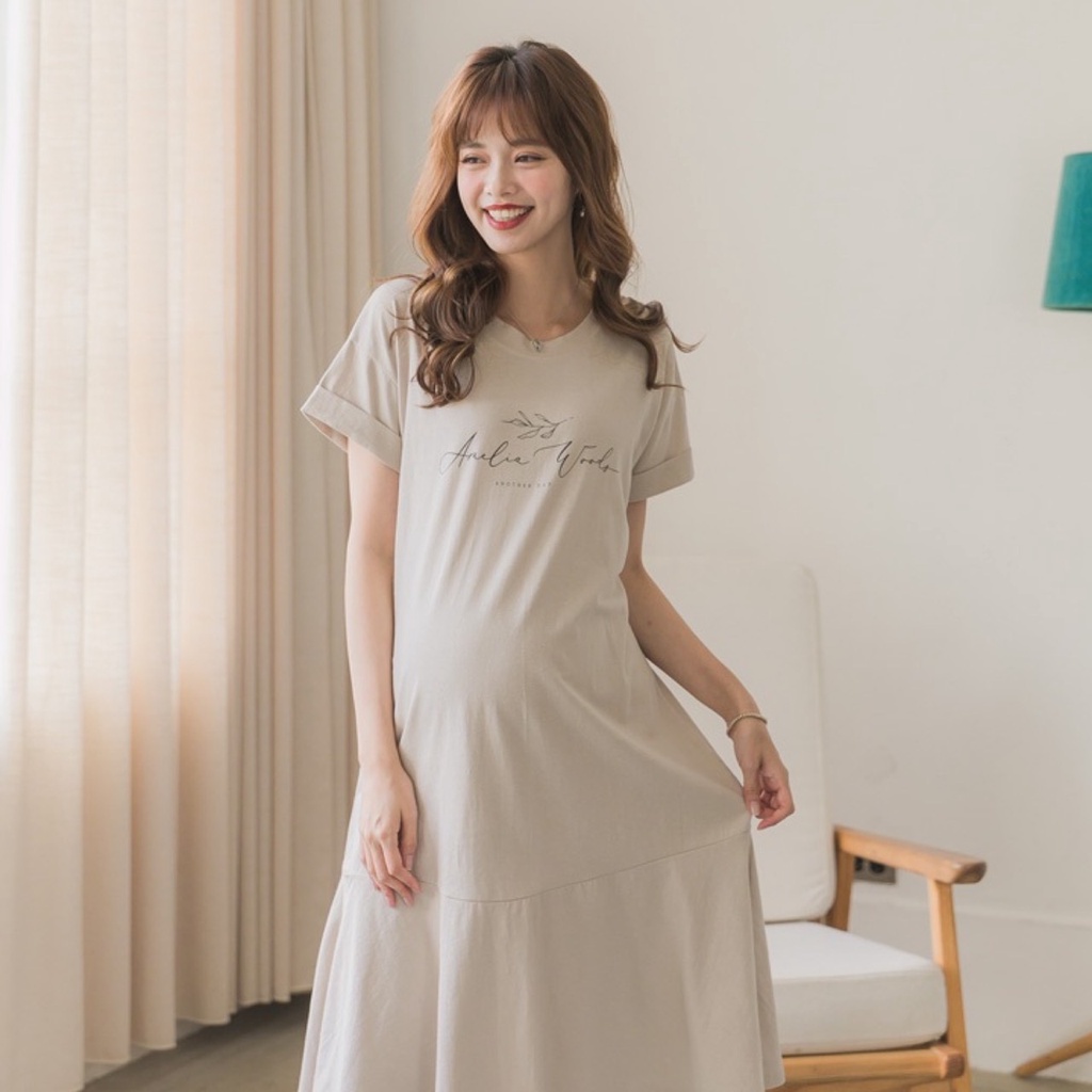 Mamamia孕婦裝 英文字反折袖魚尾洋孕婦裝 正韓製 短袖 孕婦裙 孕婦連身裙 連身洋裝 孕婦洋 [D7079]