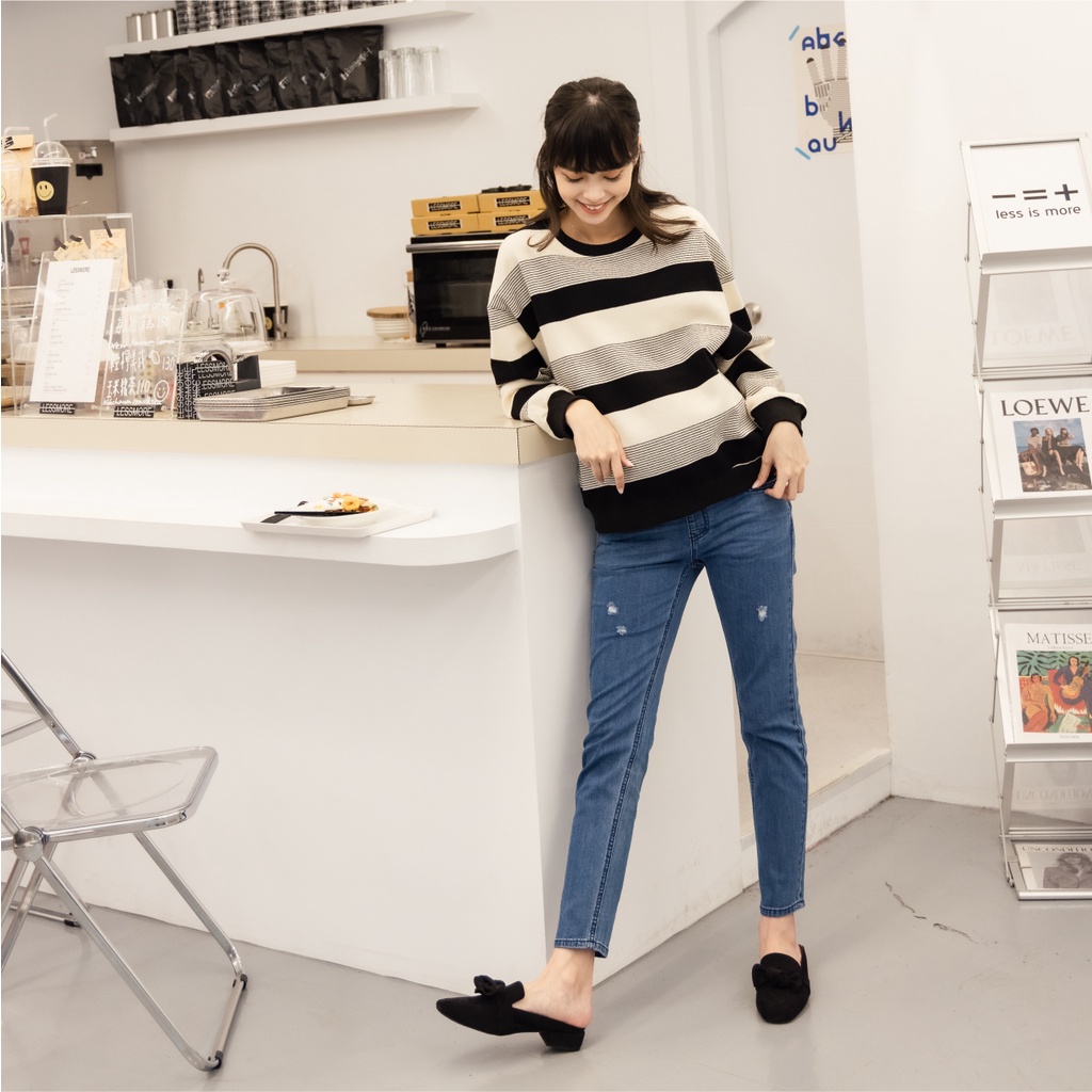 Mamamia孕婦裝 3WAY顯瘦小腳微刮破牛仔孕婦褲 孕婦長褲 長褲 孕婦 孕婦裝 托腹褲 S~XXL [B6371]