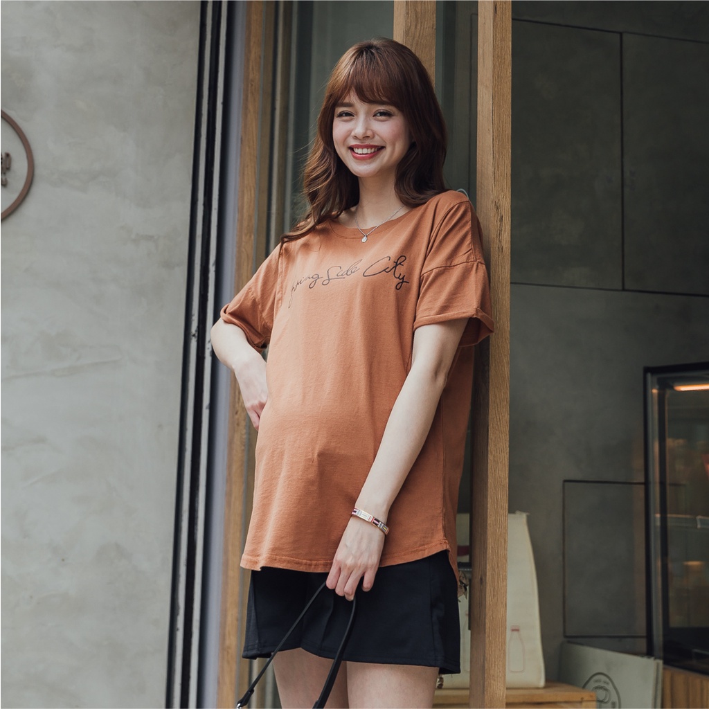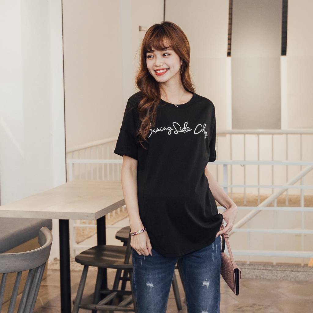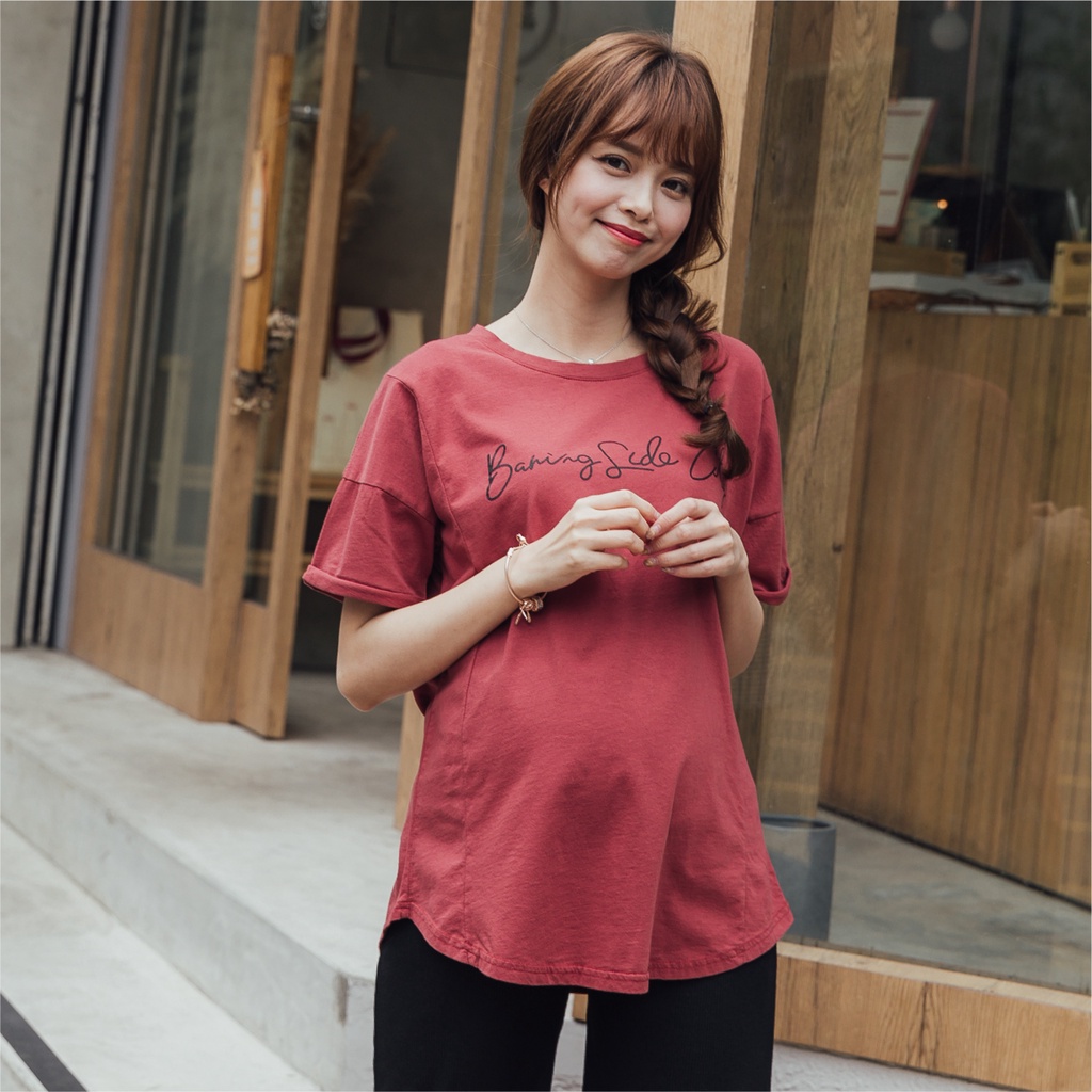 Mamamia孕婦裝 舒適英文字母圓擺孕婦上衣 正韓製 短袖 孕婦裝 寬T 百搭T T恤 [C3124]