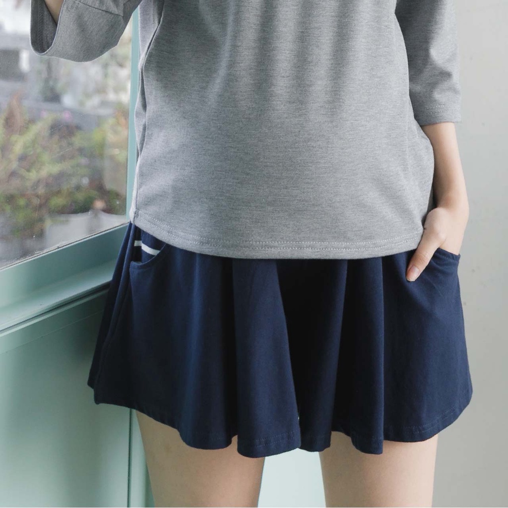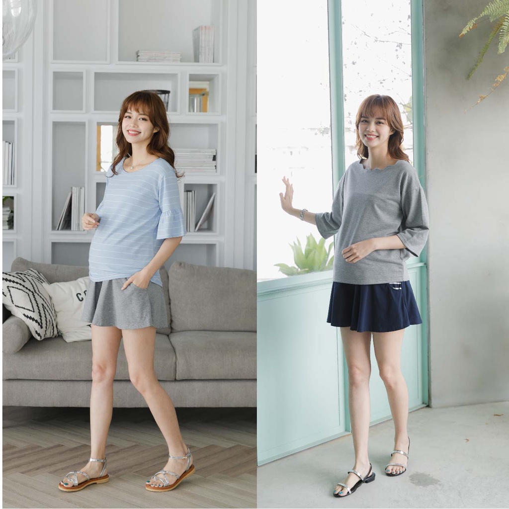 Mamamia孕婦裝 條紋口袋棉褲裙 M~XL 孕婦短褲 孕婦 孕婦裝 托腹褲 短褲 調帶腰圍 [B6006]