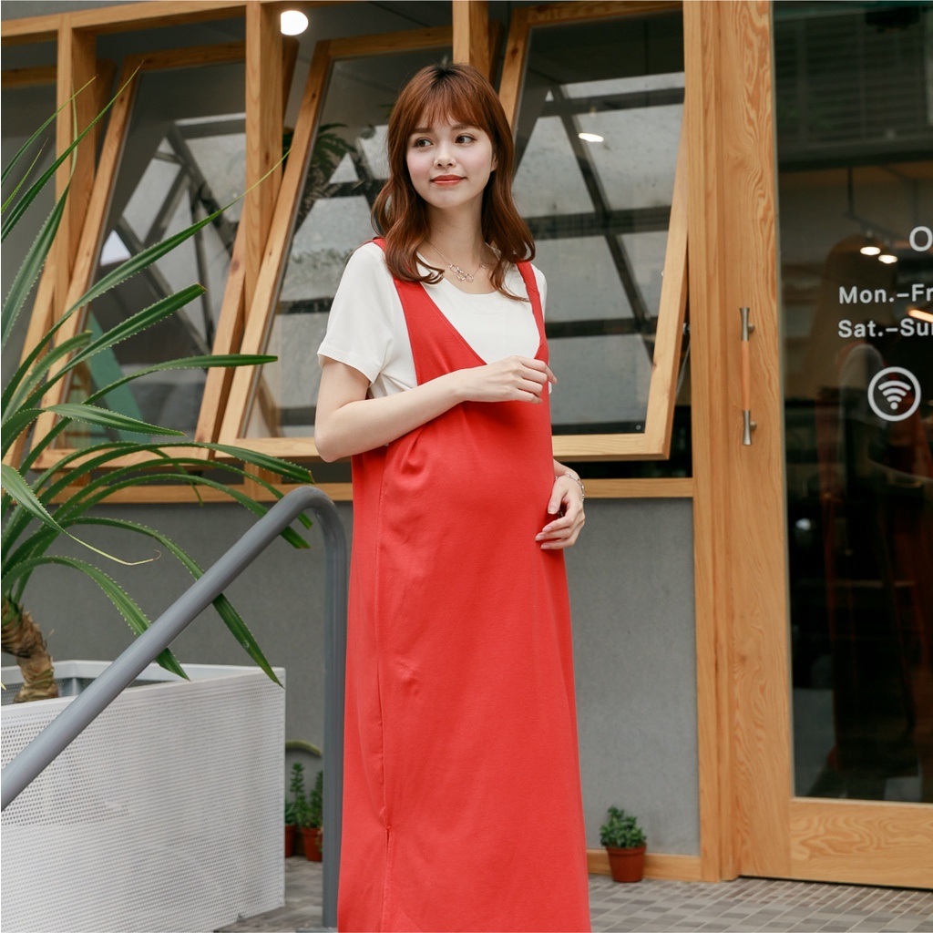 Mamamia孕婦裝 兩件式清新簡約哺乳洋裝 正韓製 哺乳衣 孕婦裝 孕婦裙 孕婦洋裝 吊帶洋裝 短袖 [A1614]