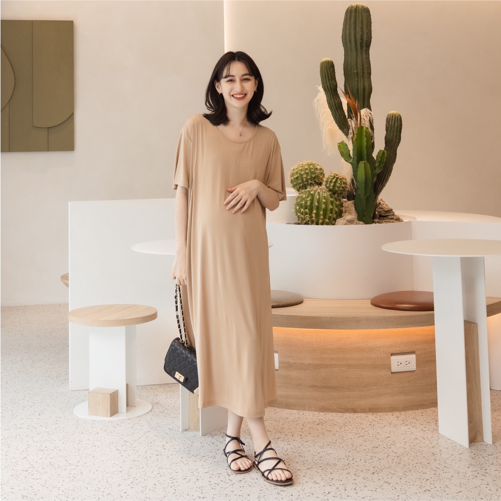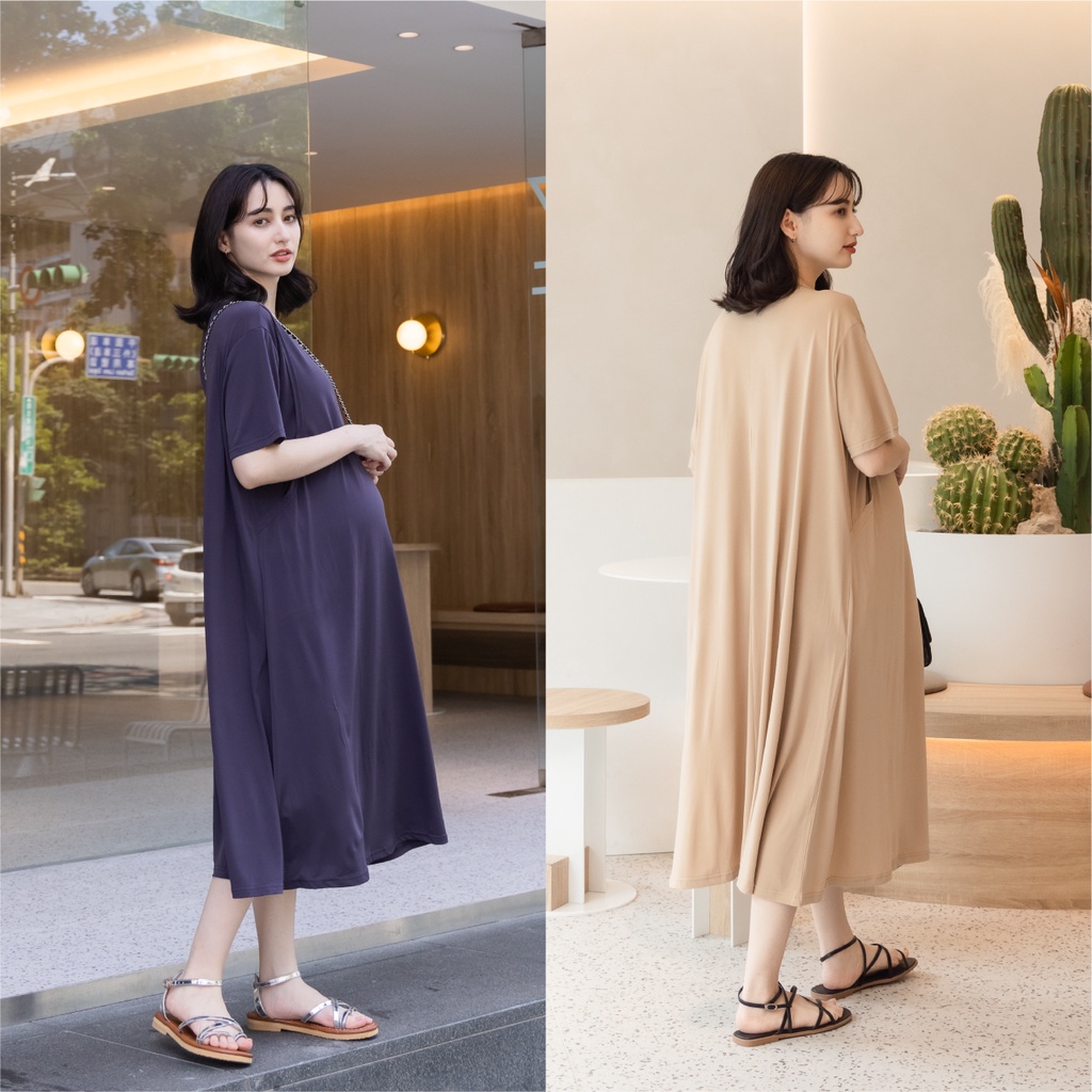 Mamamia孕婦裝 極舒適涼感彈力哺乳洋裝 正韓製 哺乳衣 孕婦裝 孕婦裙 孕婦洋裝 喂奶衣 短袖 [A1834]