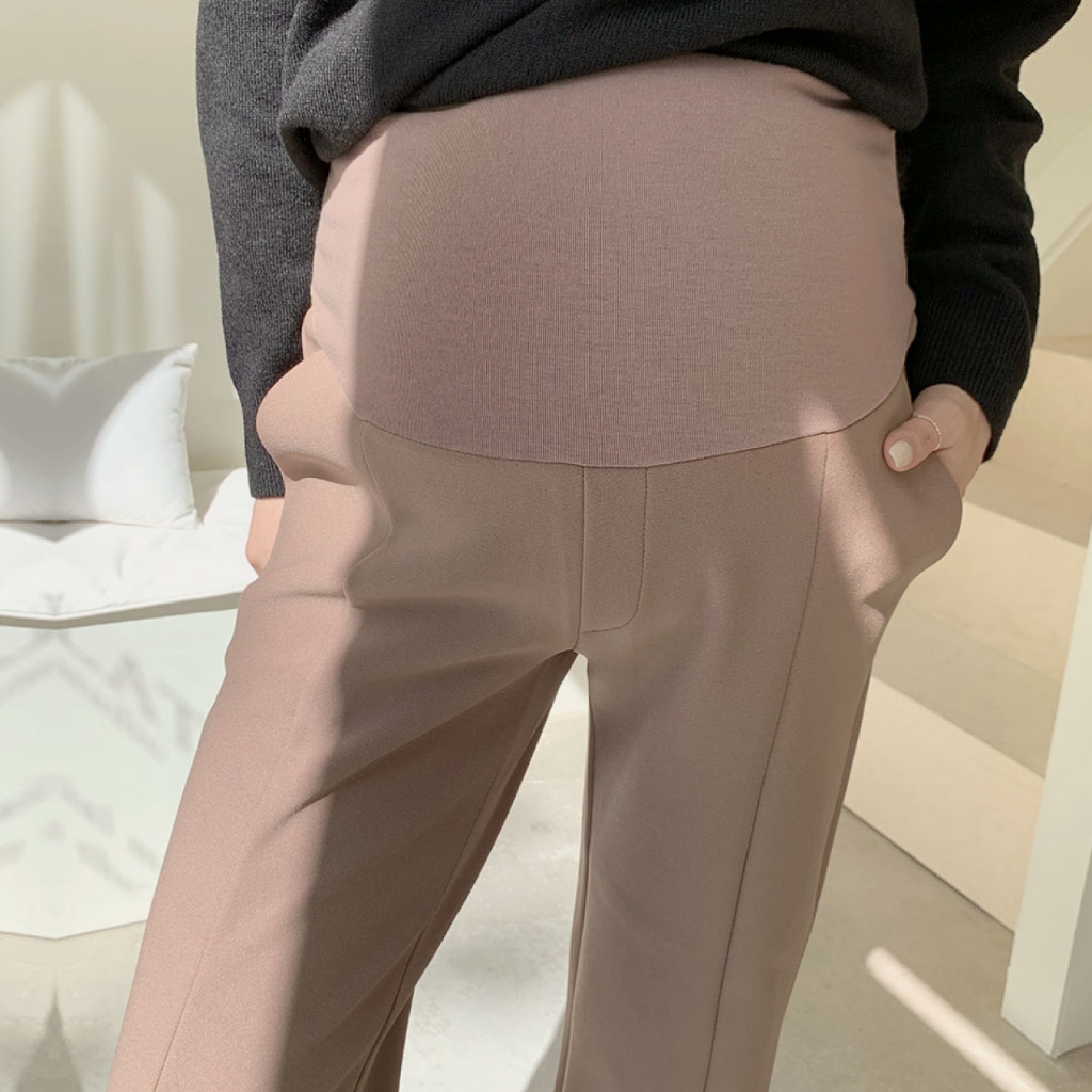 Mamamia孕婦裝 韓系直腿厚西裝孕婦褲 正韓製 上班褲 孕婦裝 孕婦褲 瑜珈腰圍 孕婦穿搭 M~XL [D7308]
