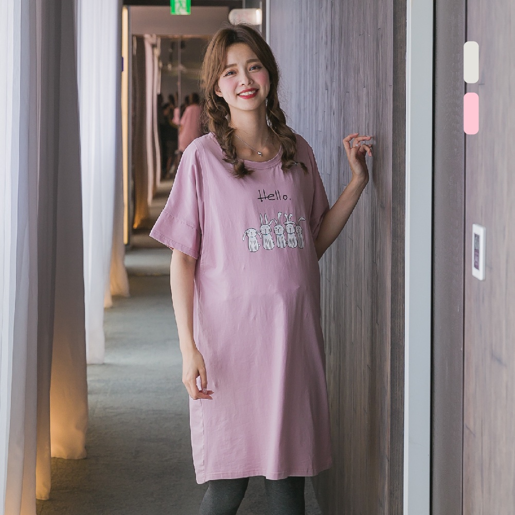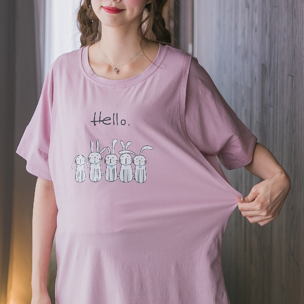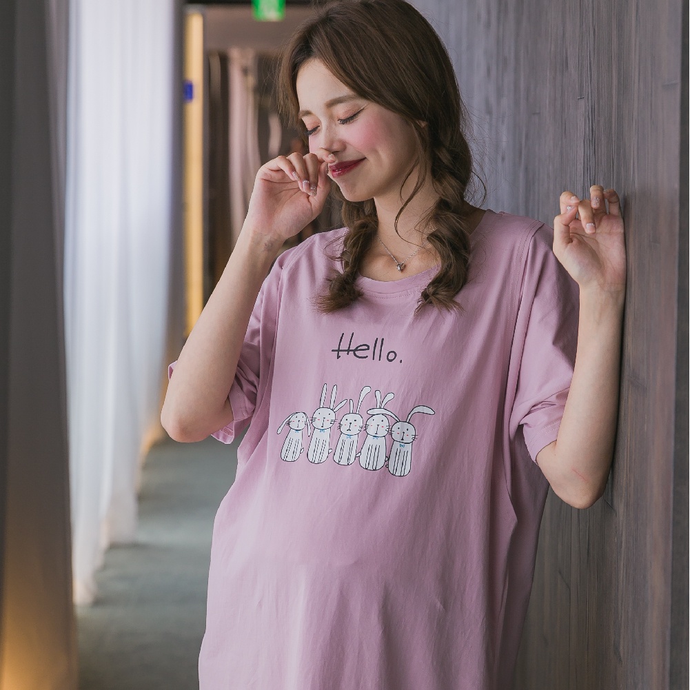 Mamamia孕婦裝 兔子居家哺乳睡衣 正韓製 哺乳套裝 短袖 哺乳衣 月子服 孕婦裝 連身裙 居家服 [A1522]