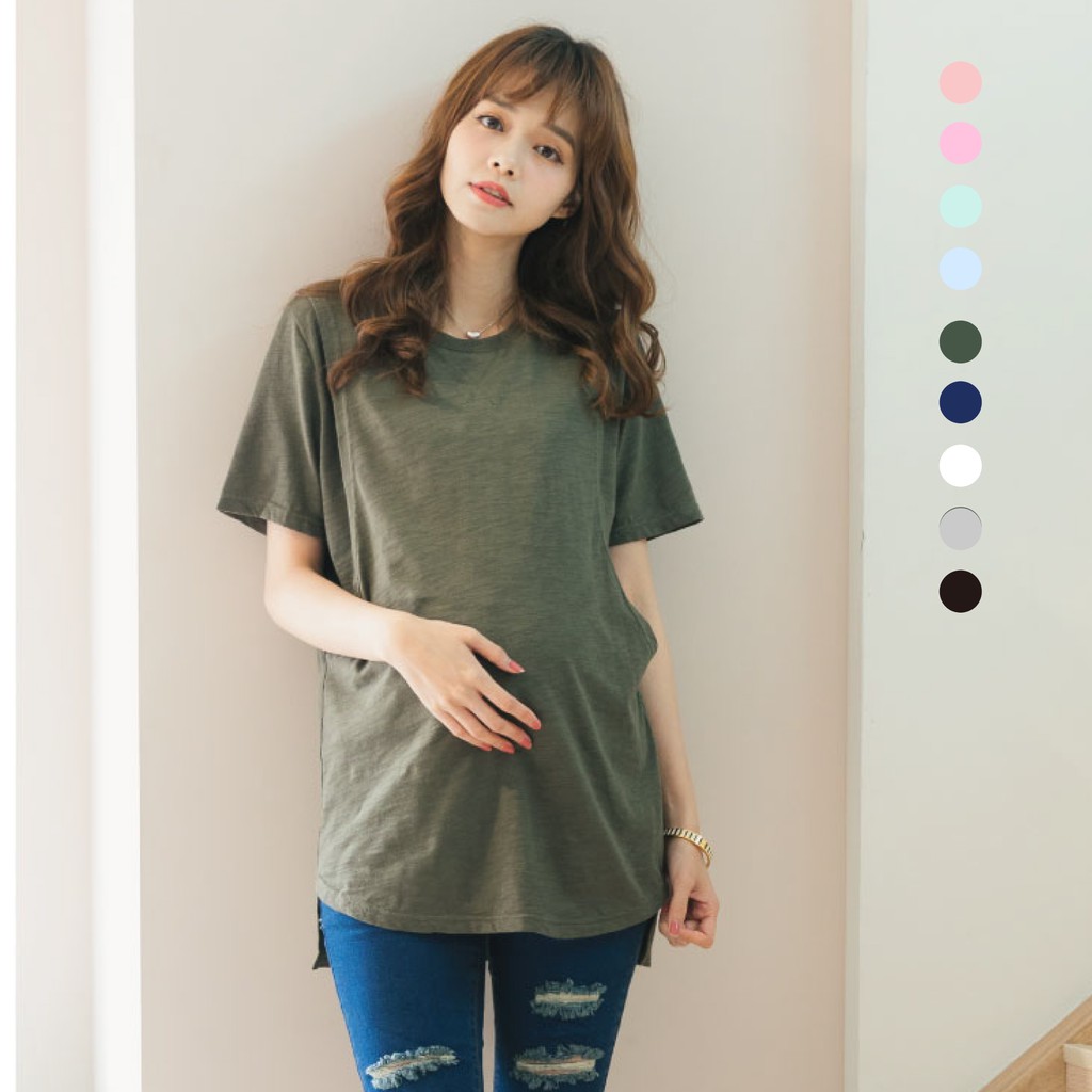 Mamamia孕婦裝 領邊交叉竹節棉哺乳衣 M~L 孕婦裝 孕婦上衣 喂奶衣 短袖 哺乳 [A1260]