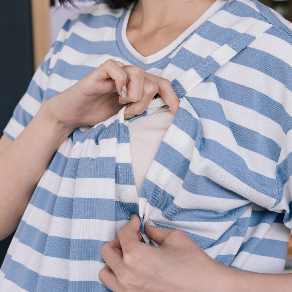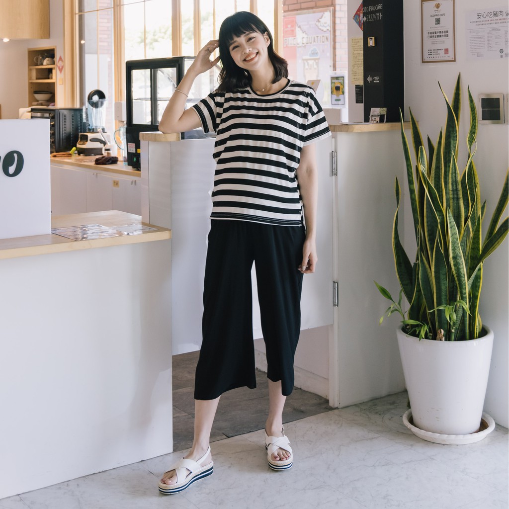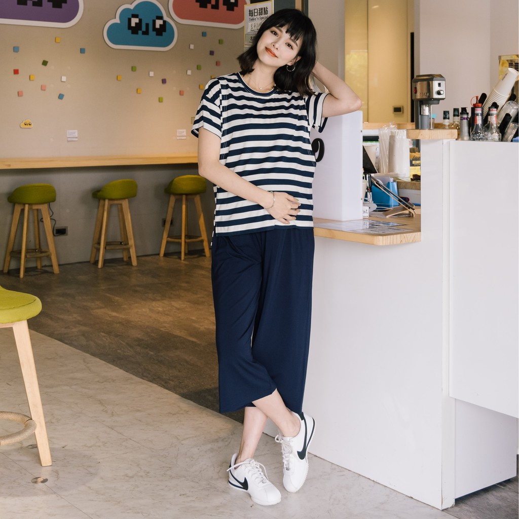 Mamamia孕婦裝 條紋上衣+寬褲哺乳套裝 M~L 哺乳睡衣 喂奶衣 長袖 哺乳衣 月子服 孕婦裝[A1718]