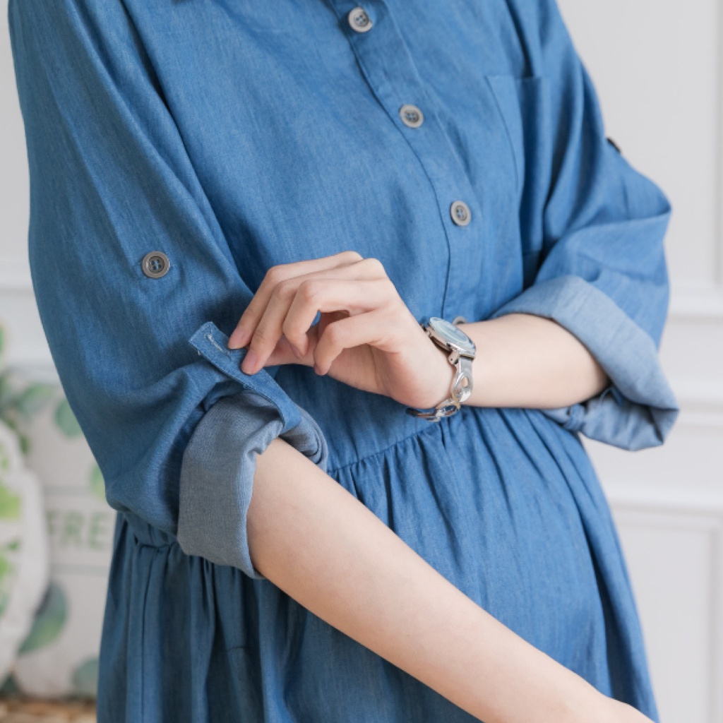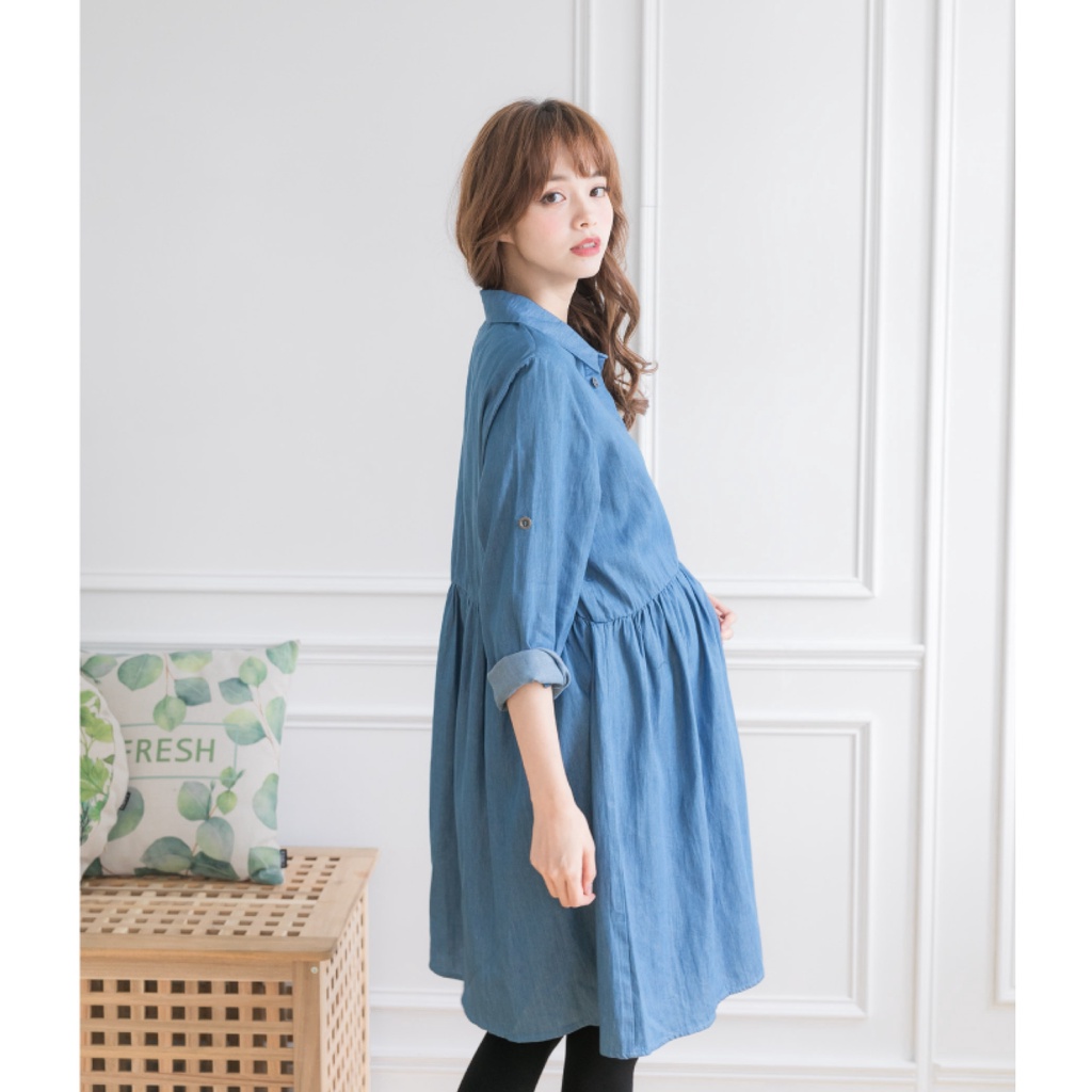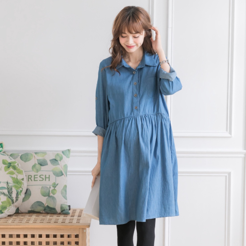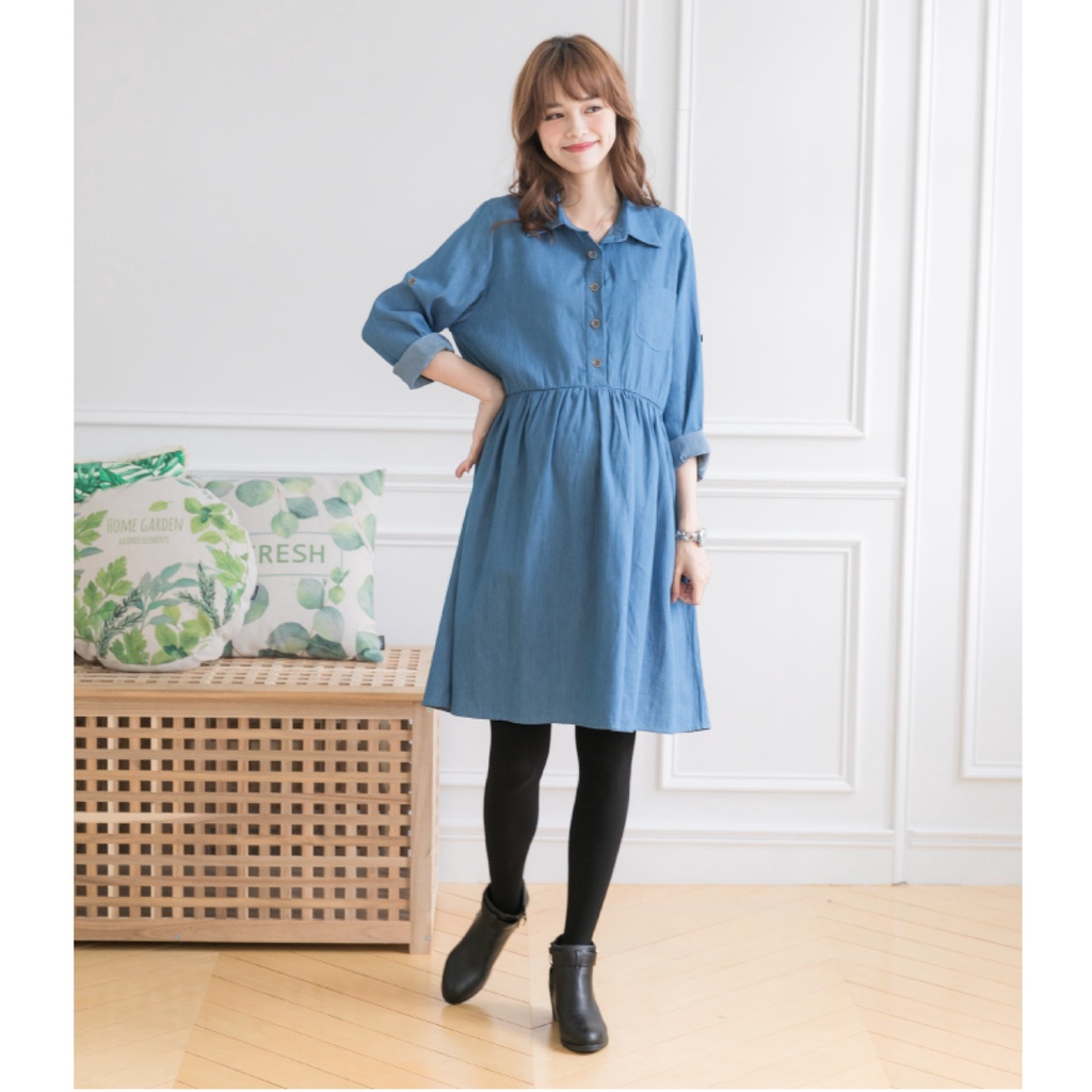 Mamamia孕婦裝 立領長袖牛仔哺乳洋裝 正韓製 哺乳衣 孕婦裝 寬鬆孕婦裝 孕婦上衣 短袖 哺乳 [A1307]