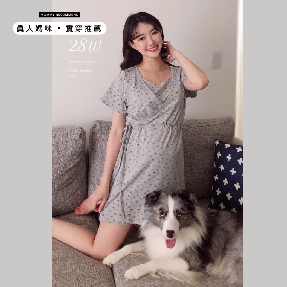 Mamamia孕婦裝 印花綁帶側掀哺乳洋裝 M~L 喂奶衣 連衣裙 短袖 哺乳衣 月子服 孕婦裝 [A1138]