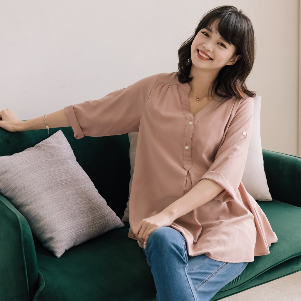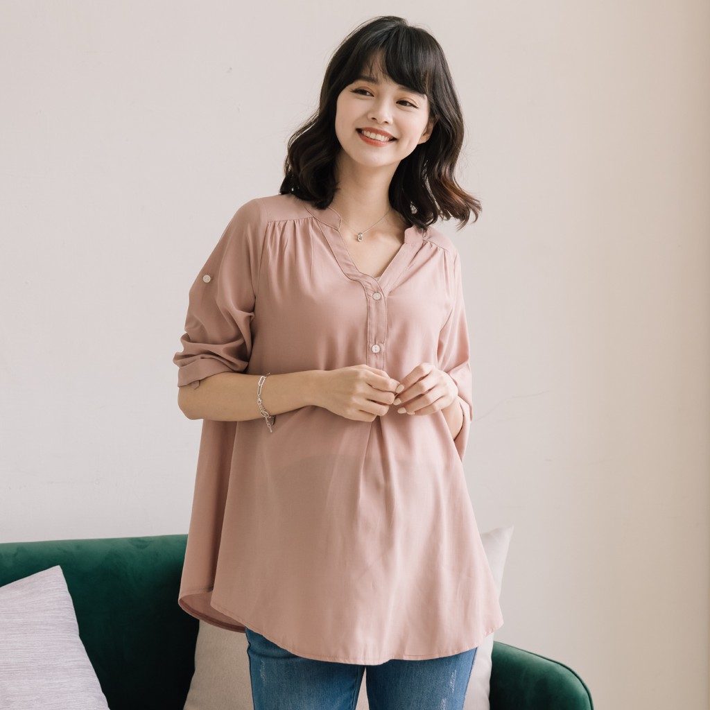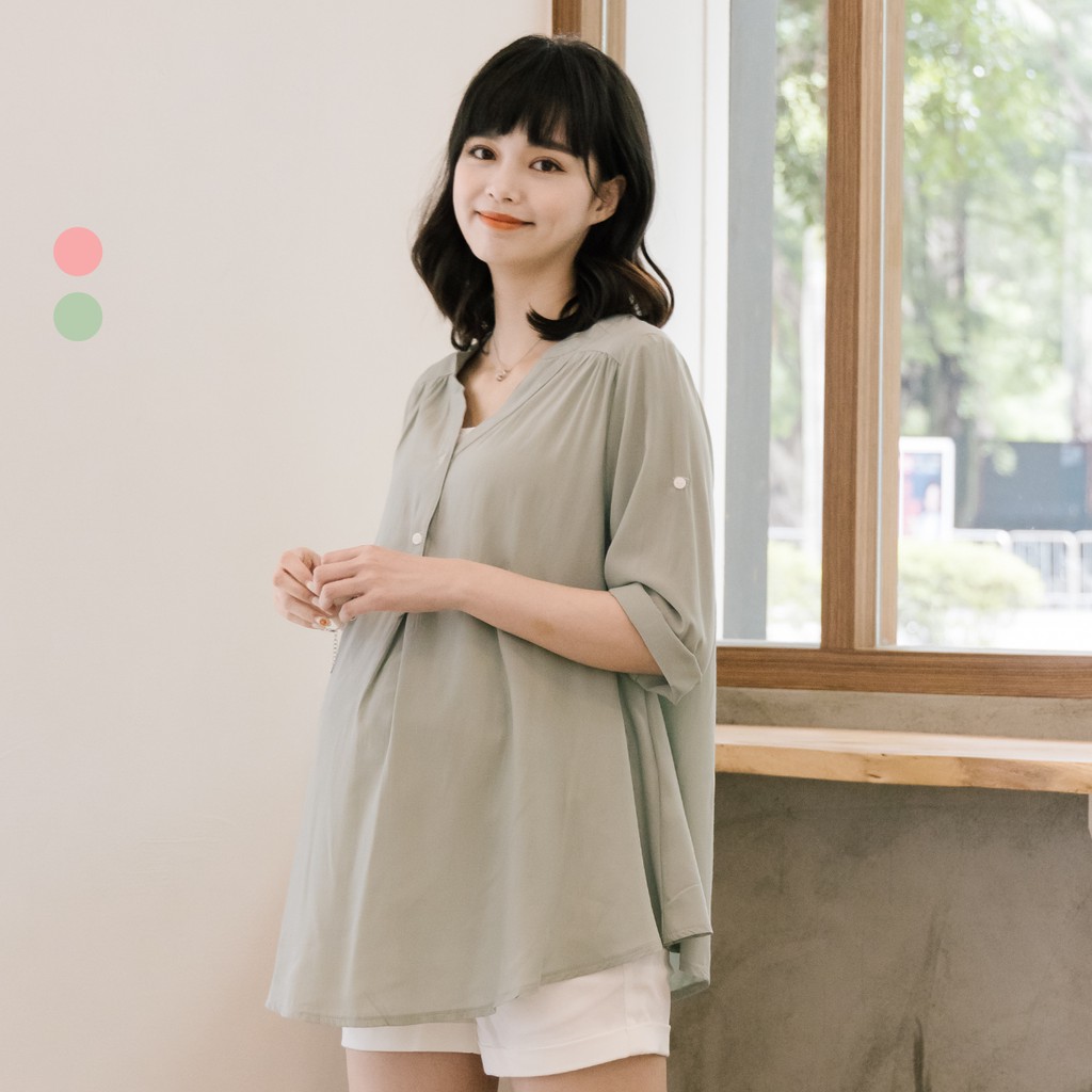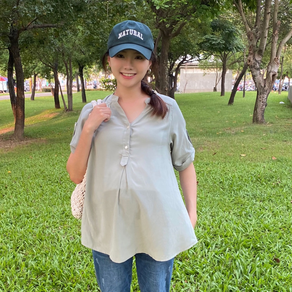 Mamamia孕婦裝 微光澤雪紡V領哺乳衣 孕婦裝 寬鬆孕婦裝 孕婦上衣 喂奶衣 短袖 哺乳 [A1767]