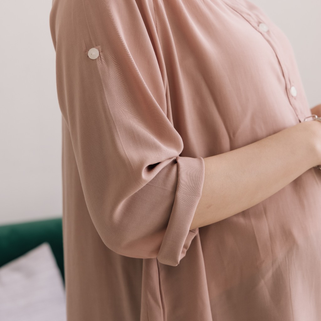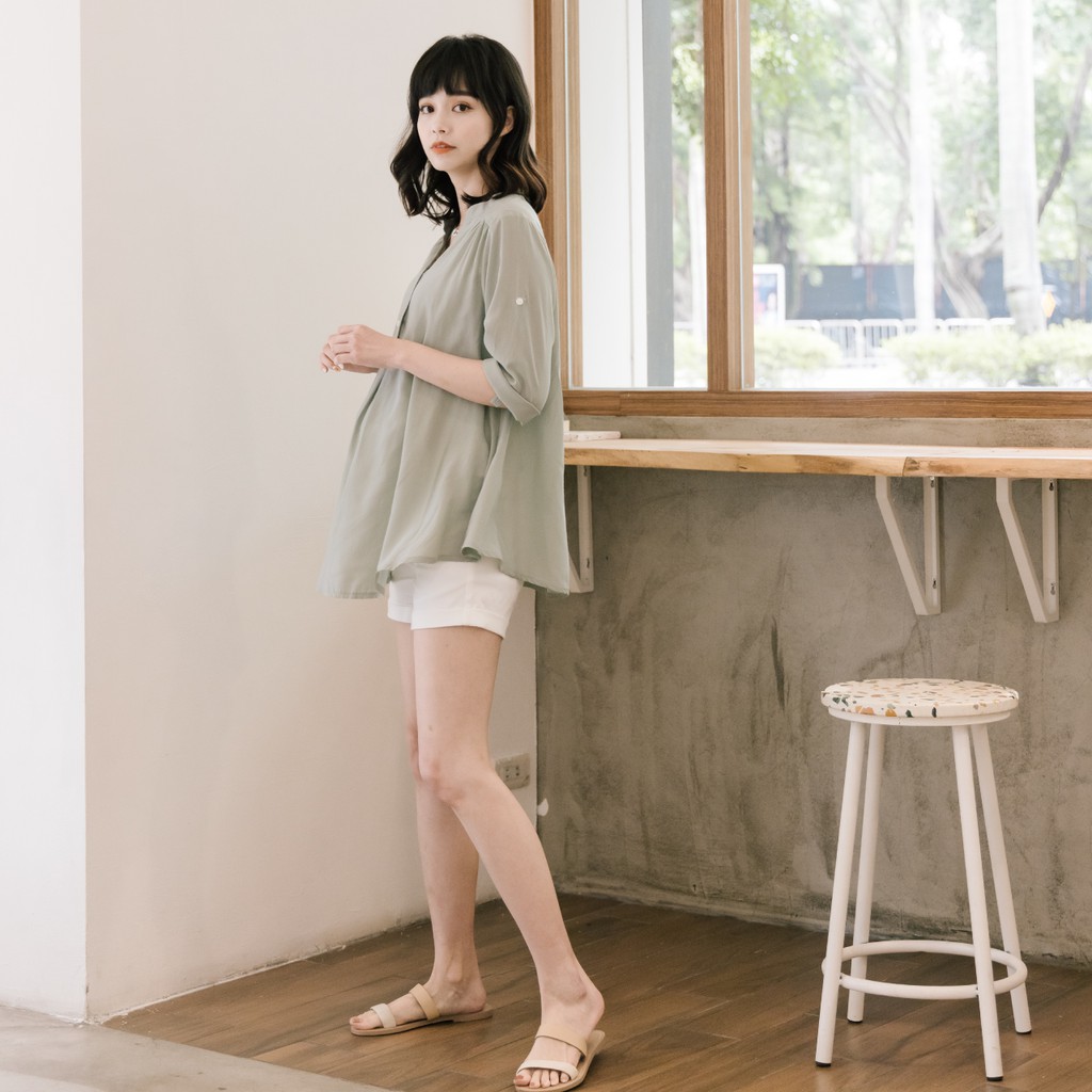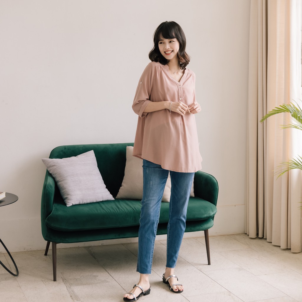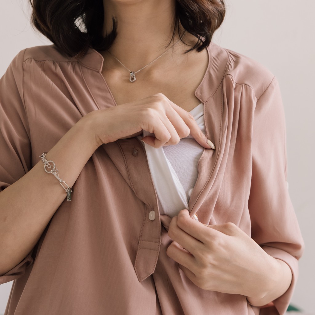 Mamamia孕婦裝 微光澤雪紡V領哺乳衣 孕婦裝 寬鬆孕婦裝 孕婦上衣 喂奶衣 短袖 哺乳 [A1767]
