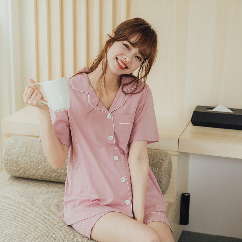 Mamamia孕婦裝 日系簡約白邊哺乳睡衣 M~XXL 哺乳套裝 喂奶衣 短袖 哺乳衣 月子服 孕婦裝[A1642]