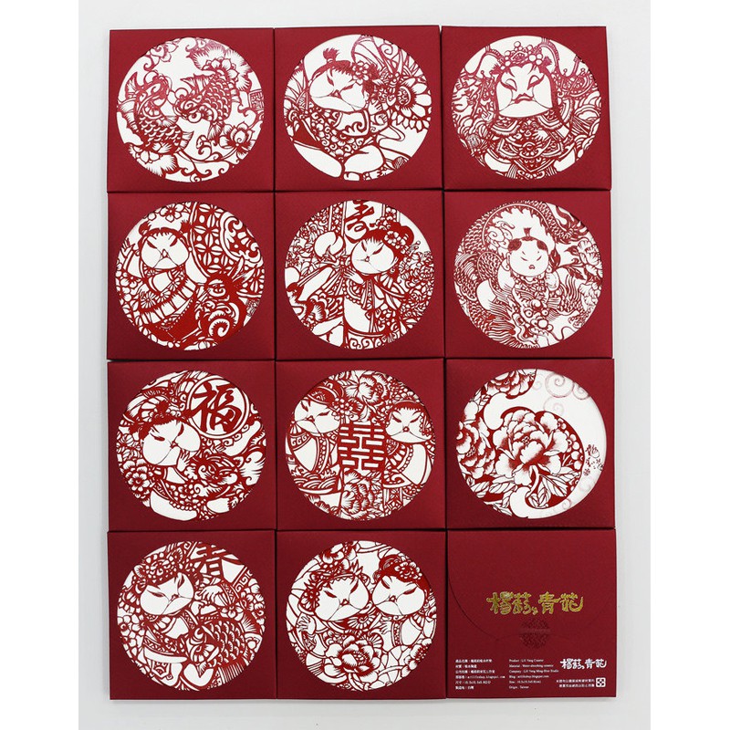 楊莉莉青花:紅色剪紙系列吸水杯墊|11款主題任選《隨附精美禮袋》剪紙藝術 文創設計 鶯歌陶瓷 耶誕禮 聖誕禮 吸水杯墊
