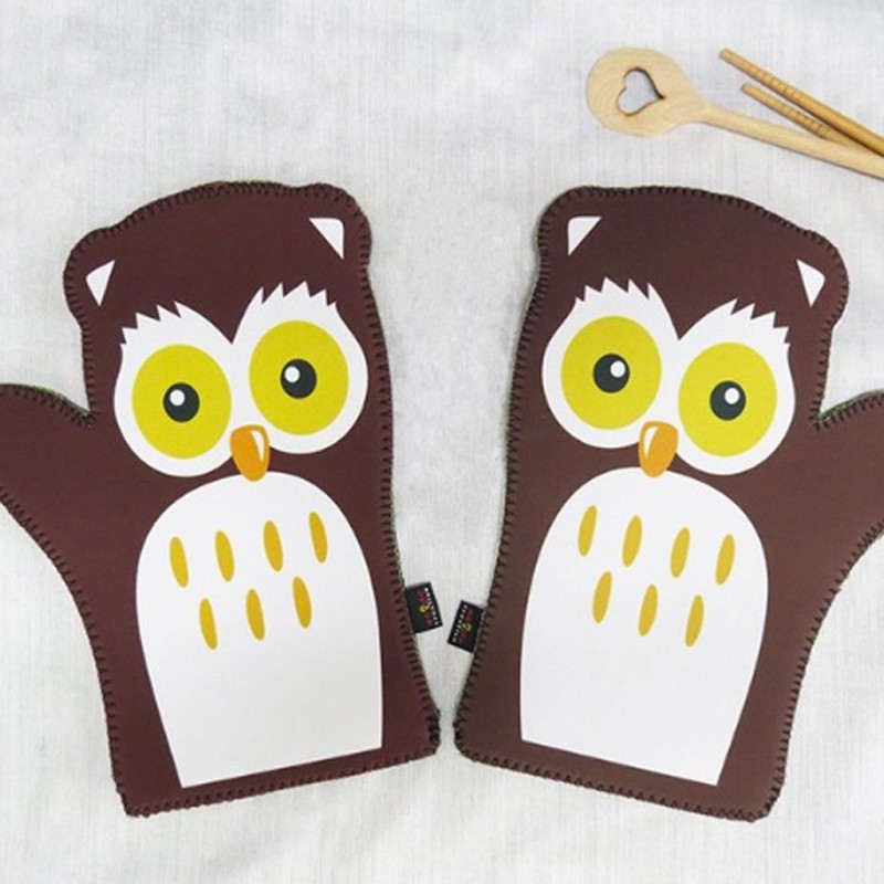 聖霖創意│台灣優良設計產品】潛水布-防滲熱【貓頭鷹】多功能隔熱護手套│一對入《每組附送輕型切割墊》