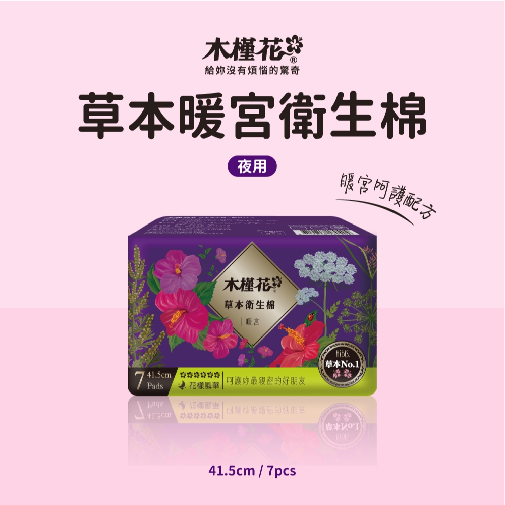 HIBIS木槿花 暖宮草本衛生棉x1入組 暖宮日用10片24cm/暖宮夜用7片41.5cm 暖宮草本呵護