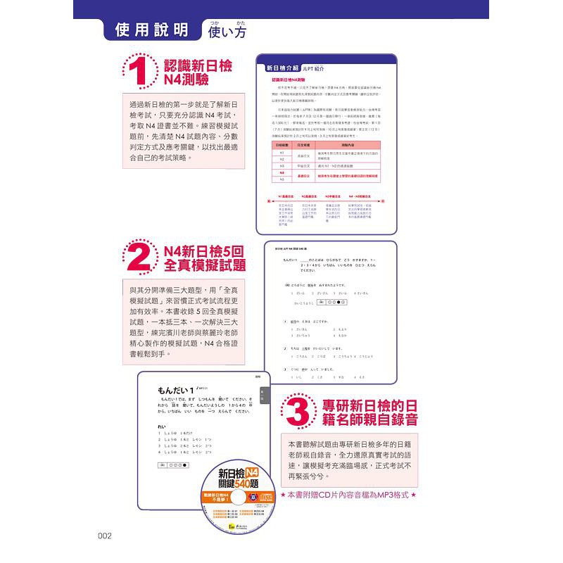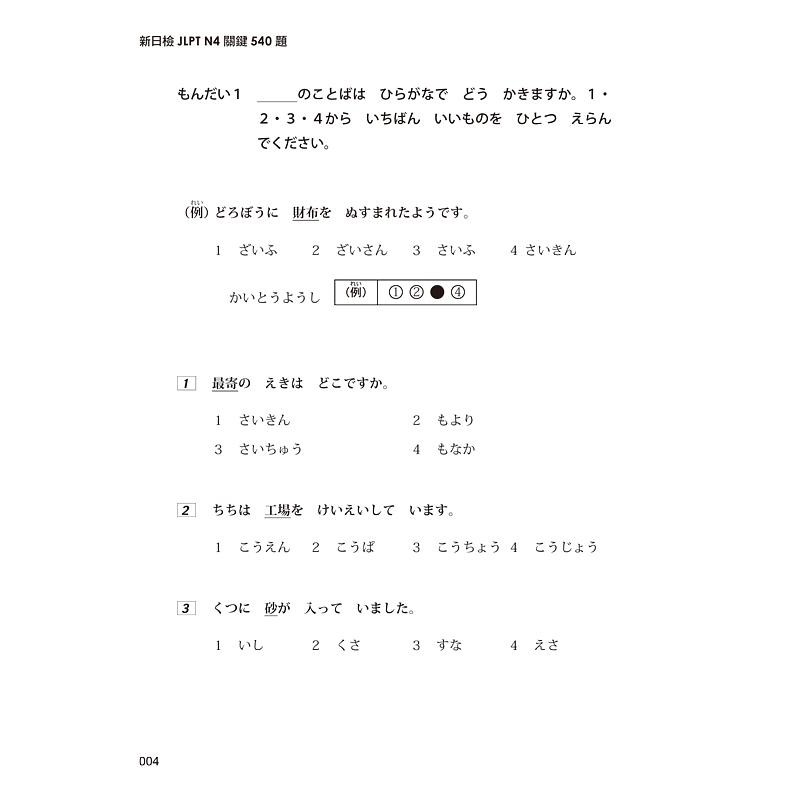 新日檢JLPT N4關鍵540題:文字、語彙、文法、讀解、聽解一次到位(5回全真模擬試題+解析兩書+1MP3)/濱川真由美, 蔡麗玲 文鶴書店 Crane Publishing