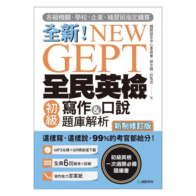 NEW GEPT 全新全民英檢初級寫作&口說題庫解析【新制修訂版】:各級機關、學校、企業、補習班指定購買!這樣寫、這樣說,99%的考官都給分!/國際語言中心委員會/郭文興/許秀芬 文鶴書店 Crane Publishing