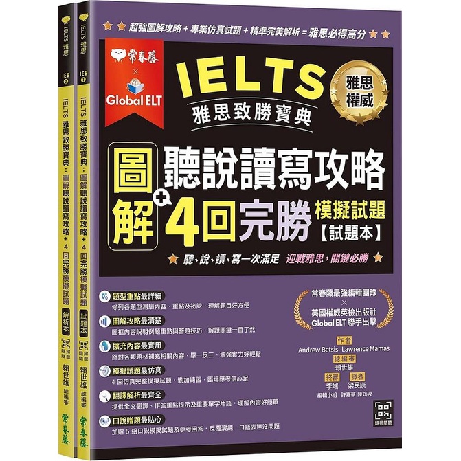 IELTS 雅思致勝寶典:圖解聽說讀寫攻略+ 4回完勝 模擬試題-試題本+解析本+ QR Code線上音檔/Andrew Betsis/ Lawrence Mamas 文鶴書店 Crane Publishing