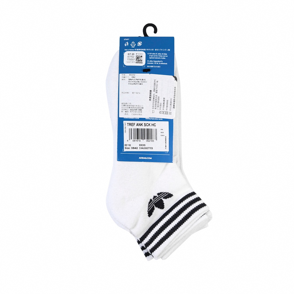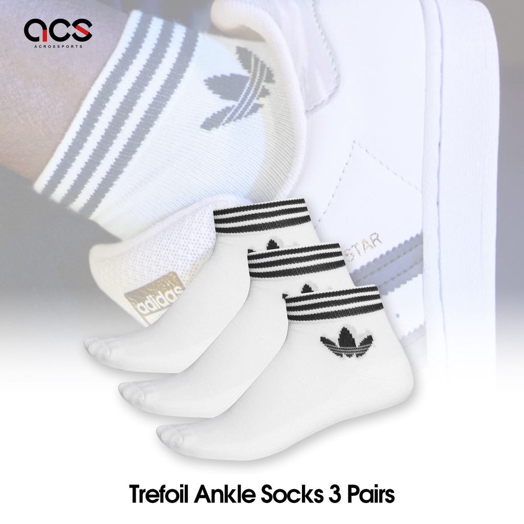 adidas 襪子 Trefoil 男女款 白 短襪 毛巾布 三雙入 愛迪達 三葉草 【ACS】 EE1152