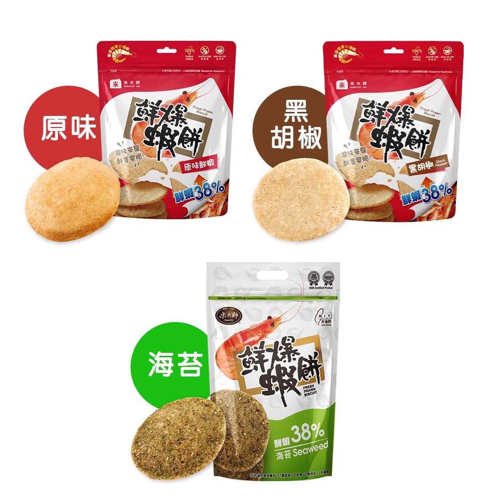 【米大師】鮮爆蝦餅-原味/黑胡椒/海苔(蝦餅|非油炸|零食|餅乾)
