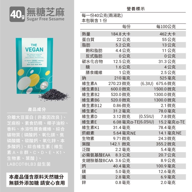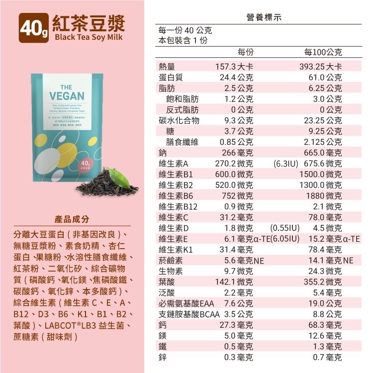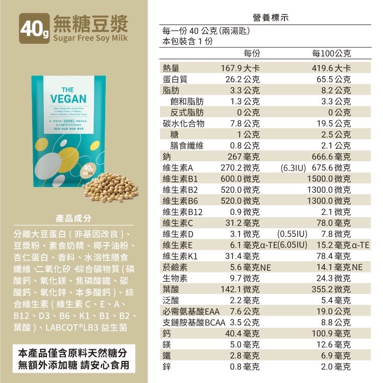 [THE VEGAN 樂維根] 純素植物性高蛋白 大豆分離蛋白 隨身包40g 乳清 Twinbrothers