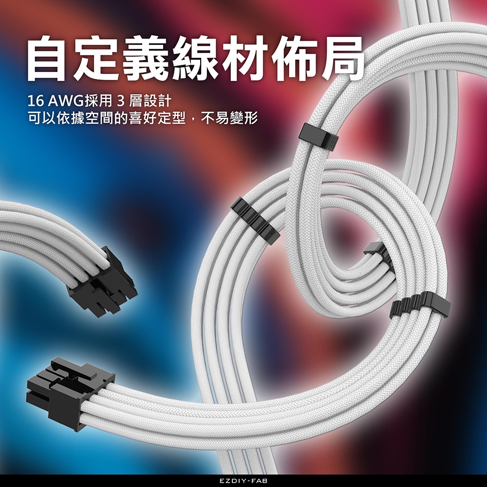 EZDIY-FAB 16AWG 電供延長編織線 30cm 6件套 power轉接延長編織線 電供延長編織線-多種顏色