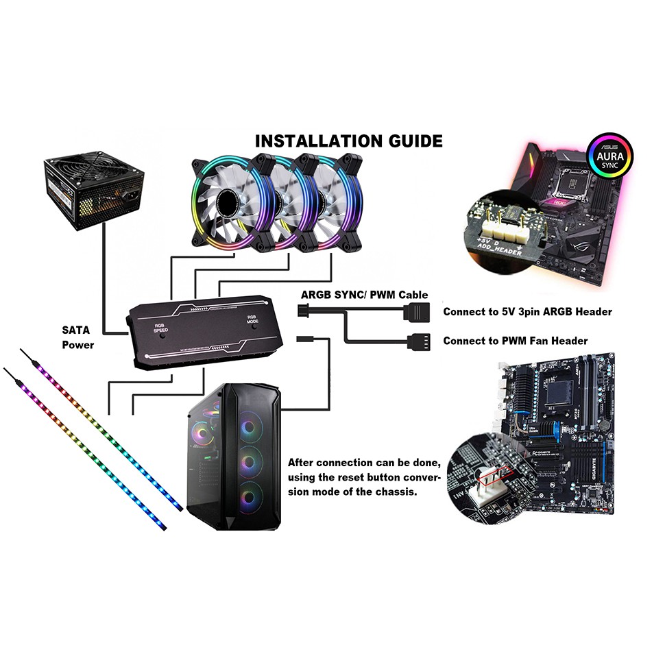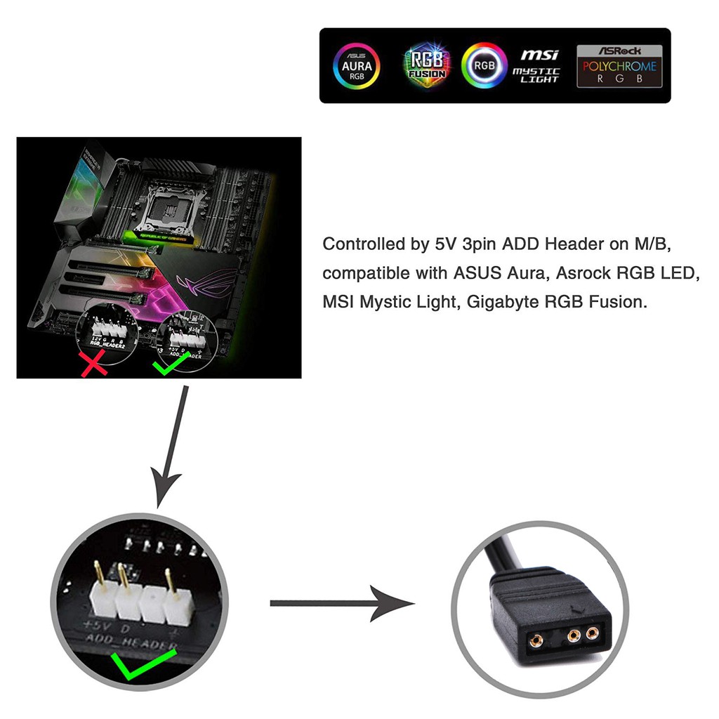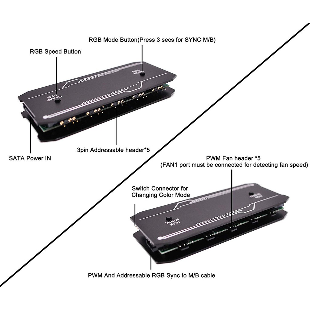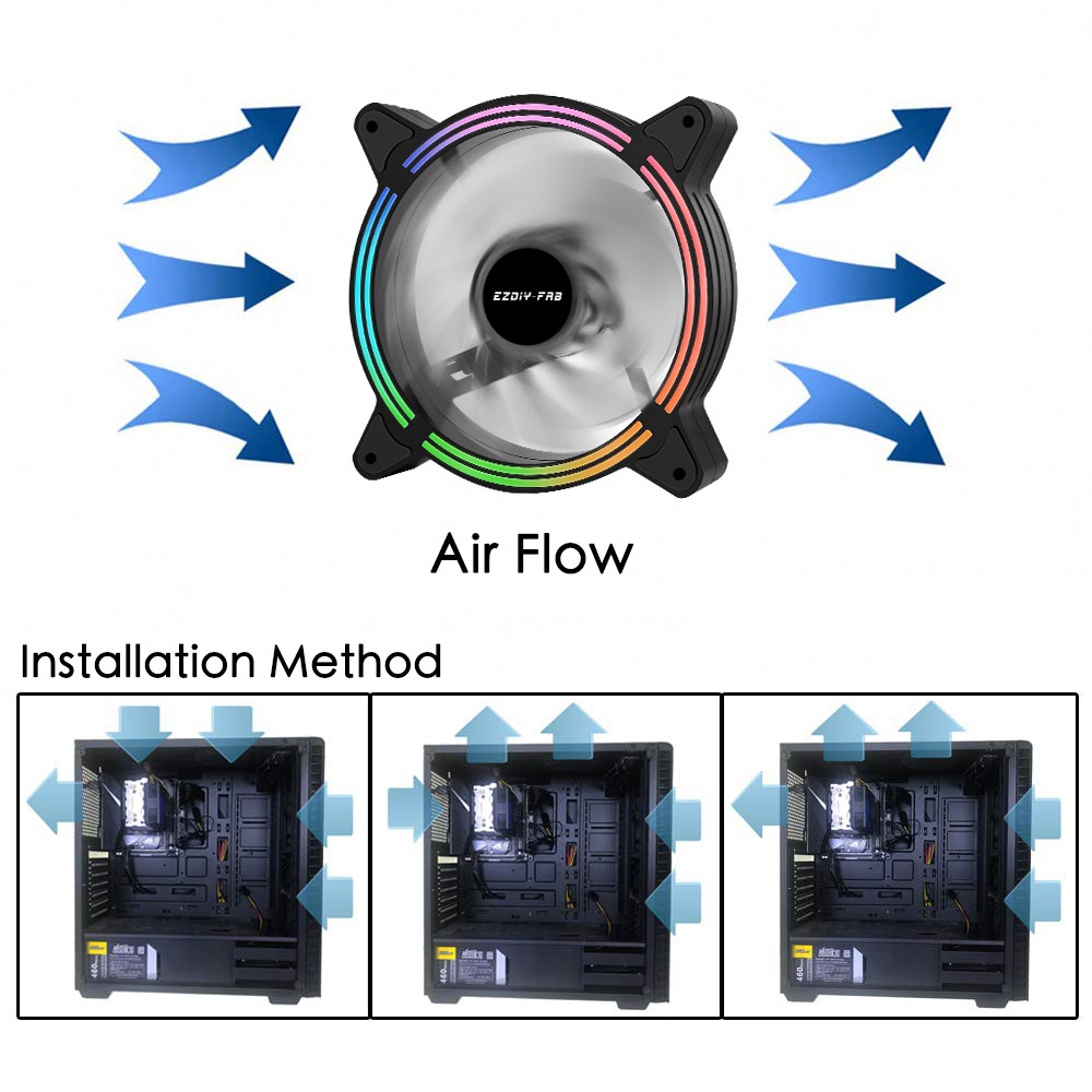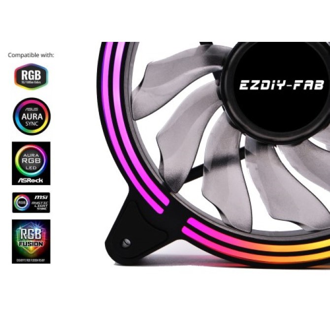 EZDIY-FAB 12cm雙框架ARGB PWM風扇 5V 3pin主板Aura 同步 散熱風扇附風扇集線器 -5顆裝