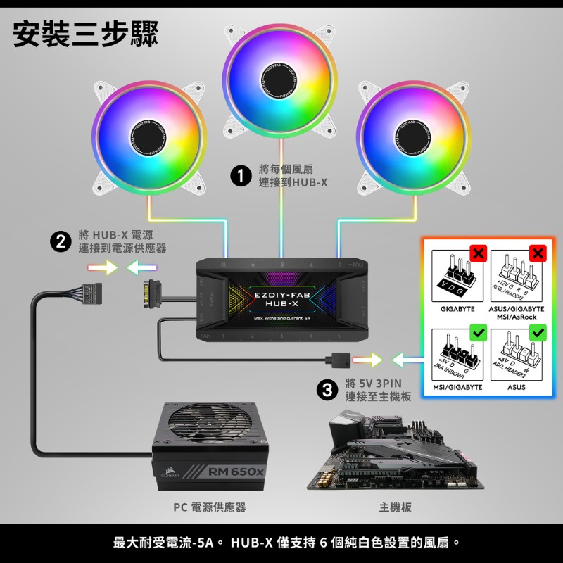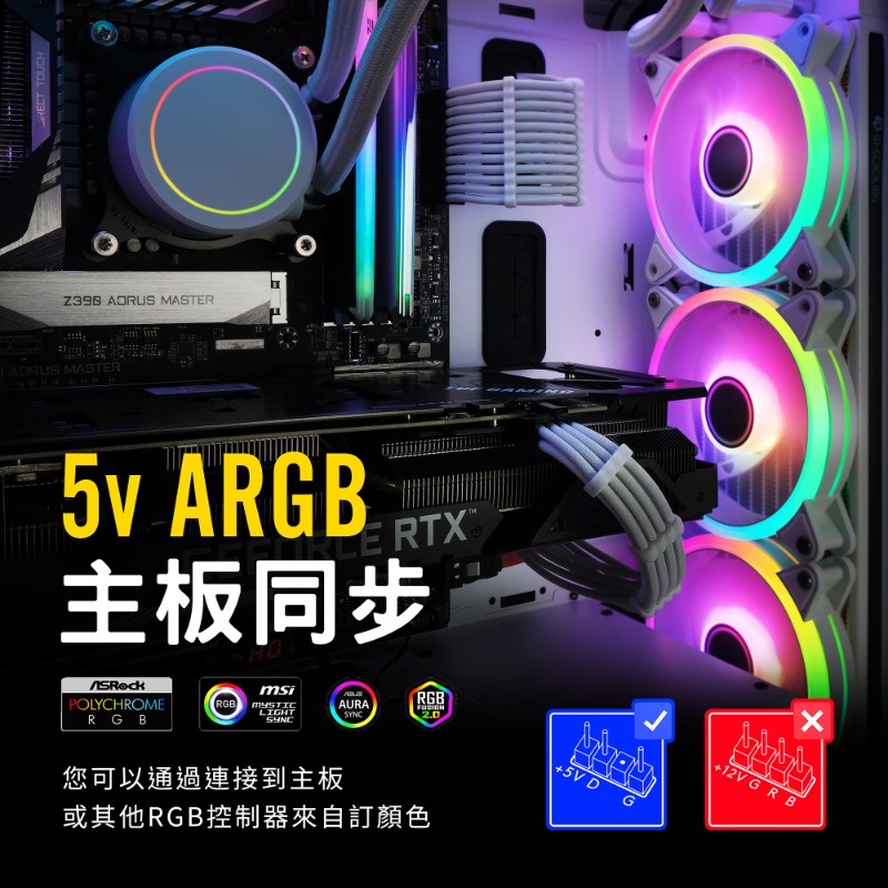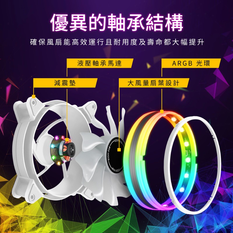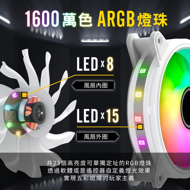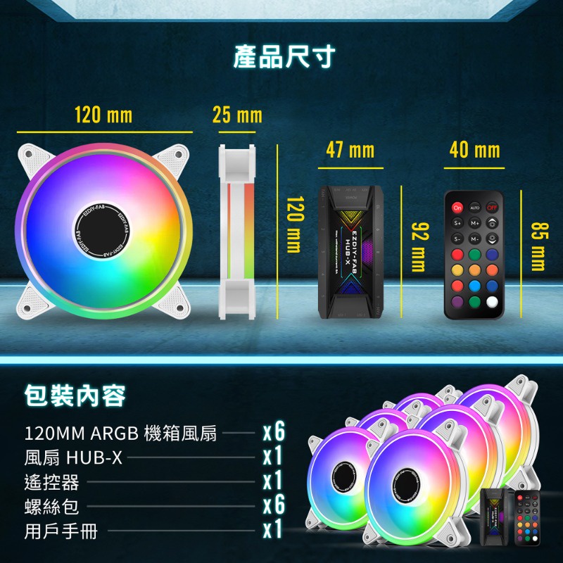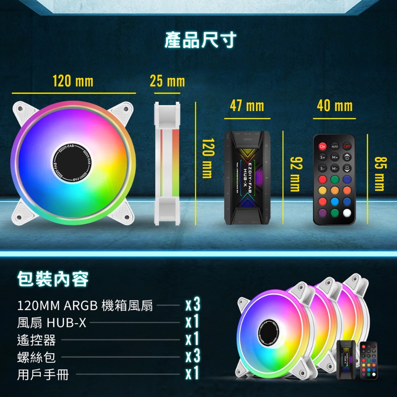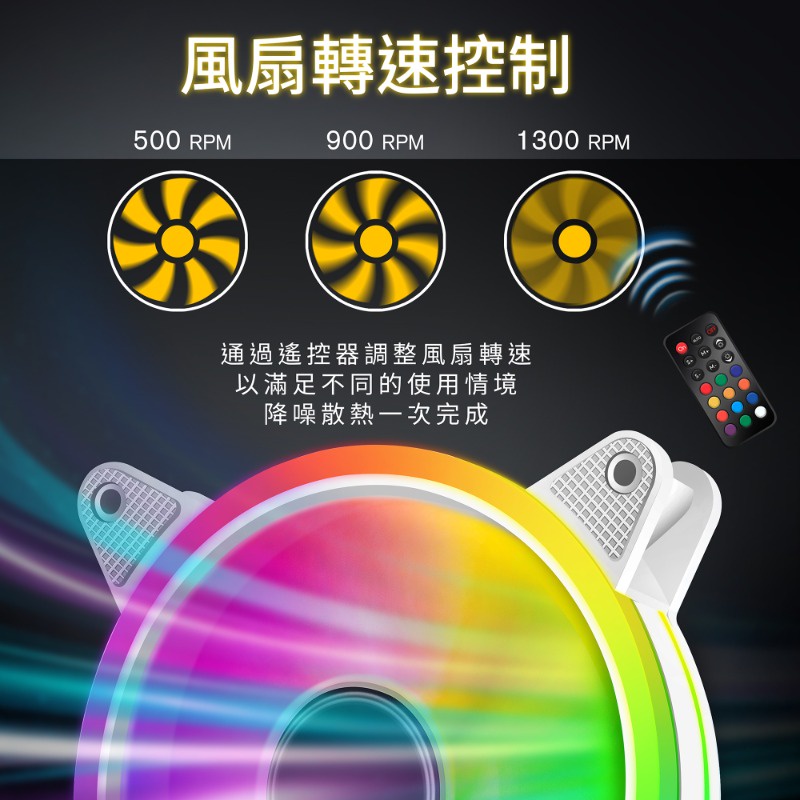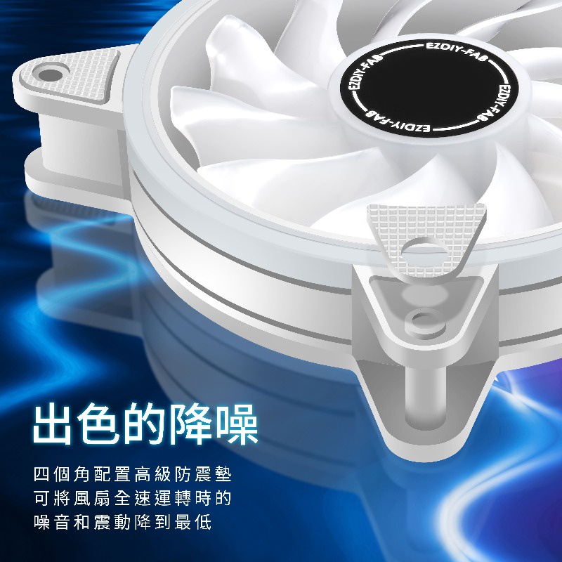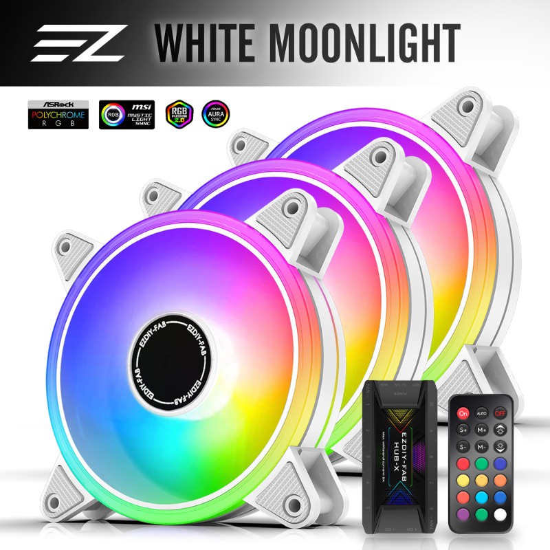 EZDIY-FAB 12cm白色月光型RGB機殼風扇附風扇集線器和遙控器 遙控器有3段風速控制智慧溫控靜音-3顆&6顆装