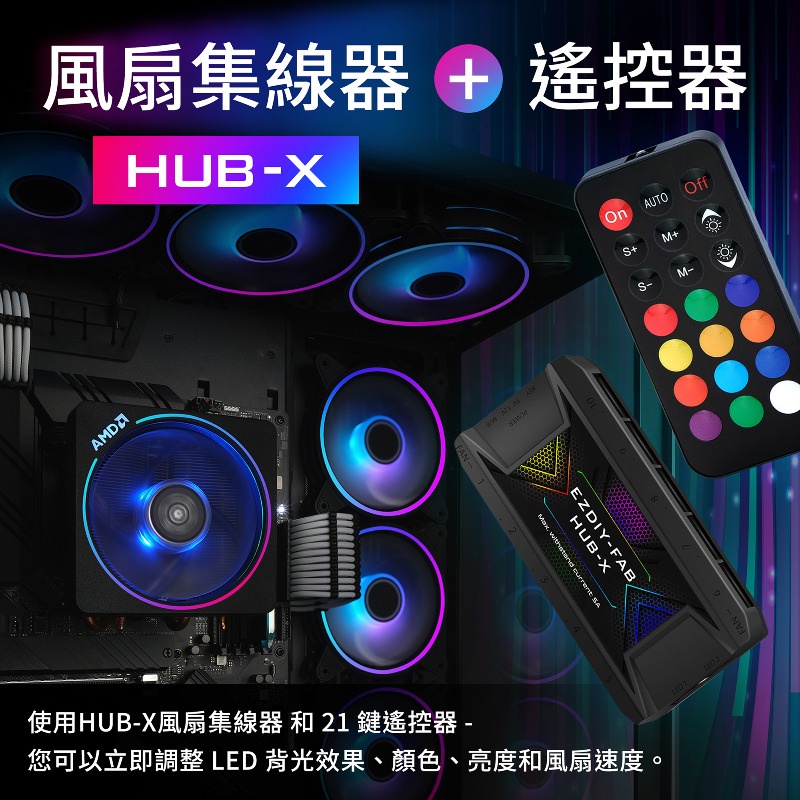 EZDIY-FAB 新版風扇集線器 1分10 6pin接口 附遙控器 可控風速及燈光
