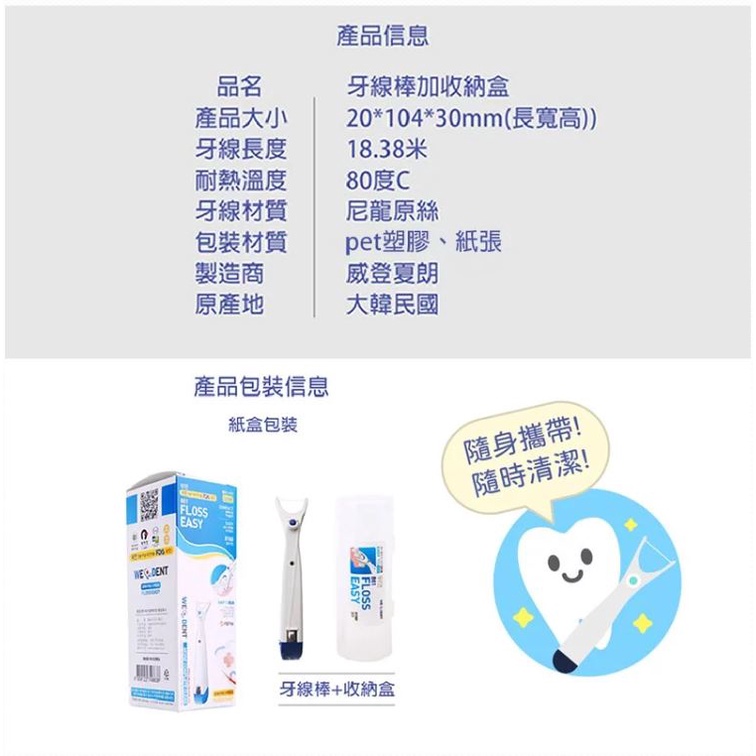【韓國 WEDENT】威登 成人攜帶式牙線棒 (顏色隨機) 可替換 環保牙線