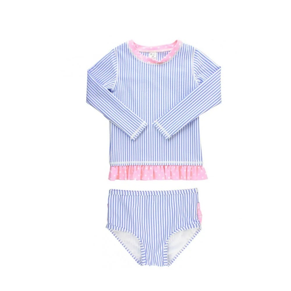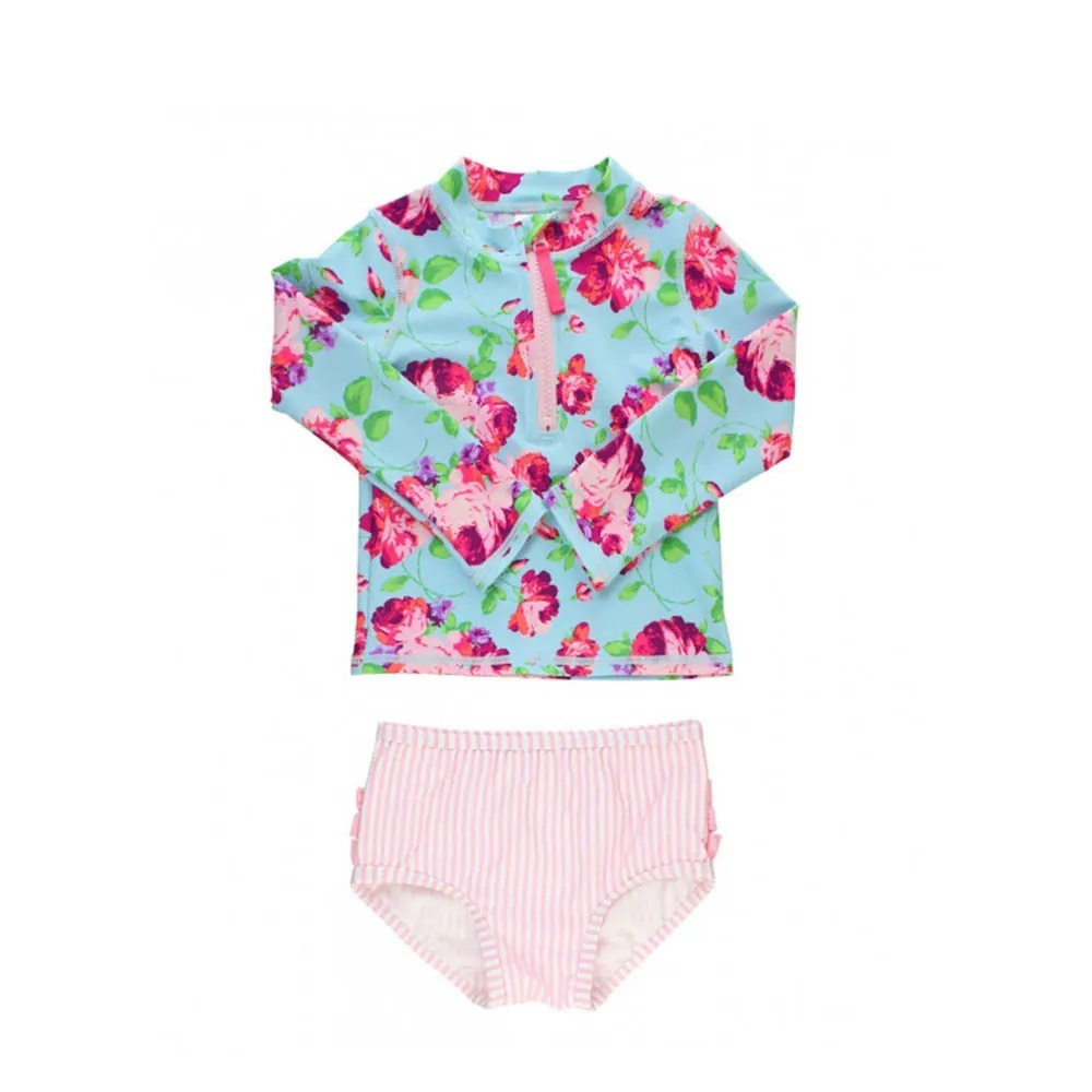 【美國 RuffleButts】兩件式長袖泳裝 玫瑰 / 花卉 / 長春花色 / 花朵綻放