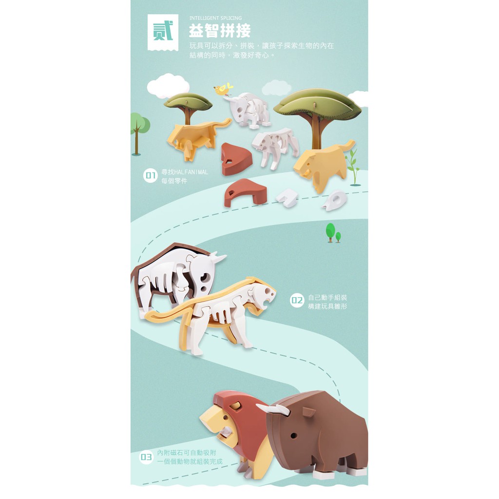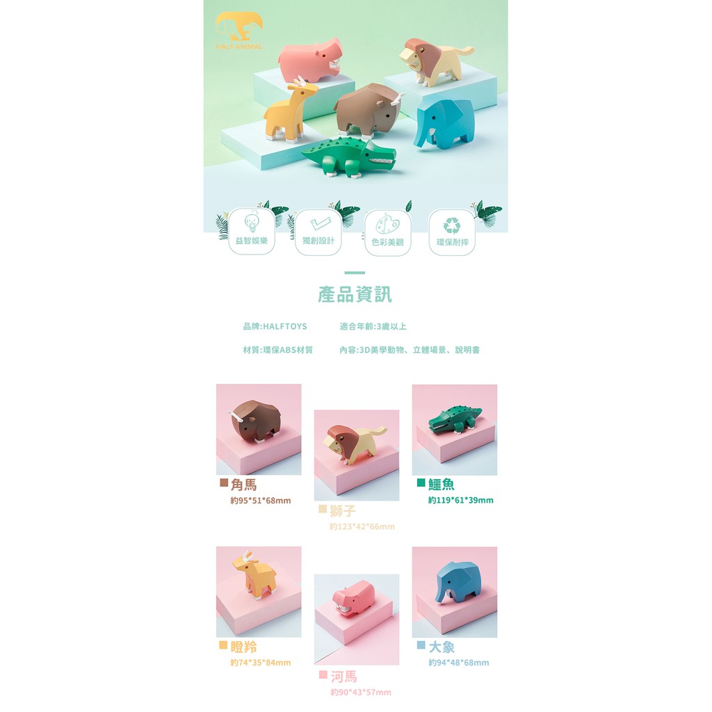 【韓國 HALFTOYS】3D動物世界系列 六款可選 聖誕禮物 交換禮物 積木玩具