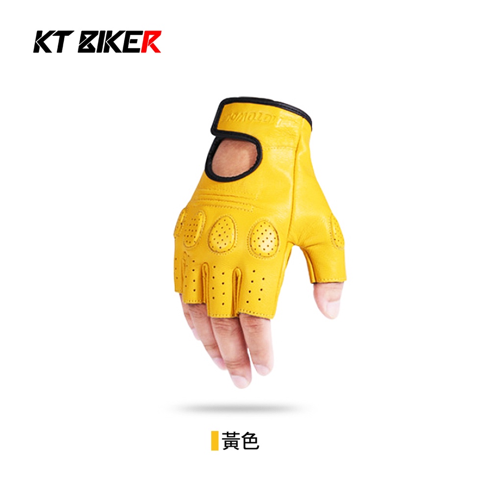【KT BIKER】 復古 真皮半指手套 羊皮手套 騎士手套 防滑 防摔 半指 騎士 夏季手套 〔MWG002〕