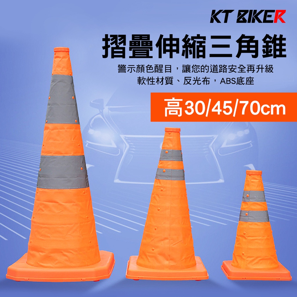 【KT BIKER】 摺疊反光三角錐 伸縮三角錐 交通錐 警示三角錐 車用警示 施工錐 警示錐〔RTC001〕