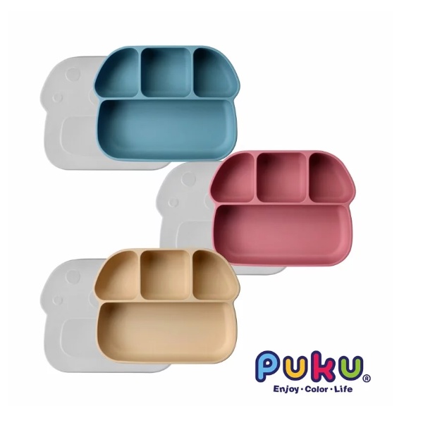 PUKU 藍色企鵝 鉑金矽膠附蓋吸盤分隔餐盤 餐盤【樂兒屋】