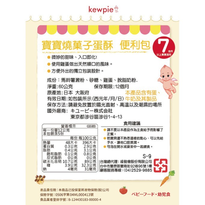 日本 丘比 Kewpie 寶寶燒菓子蛋酥【樂兒屋】