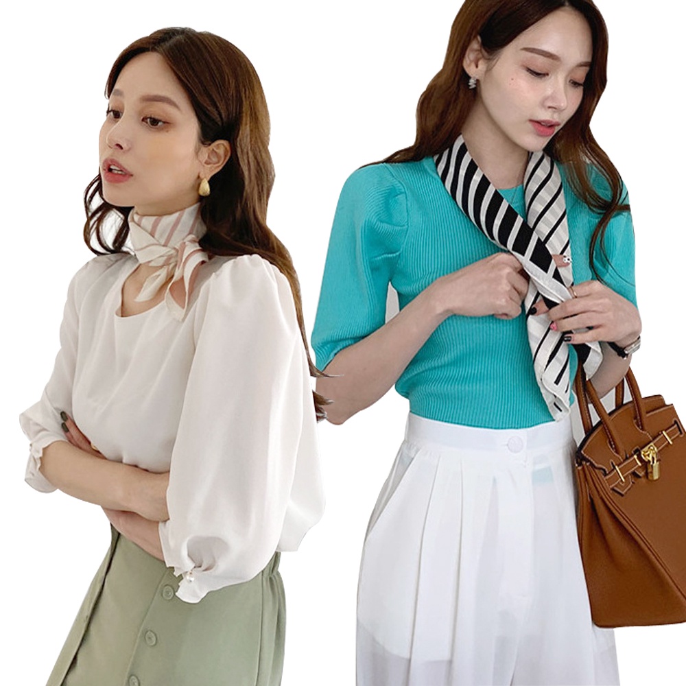seoul show首爾秀 漸變線條方領巾仿真蠶絲緞面頭巾雪紡絲巾