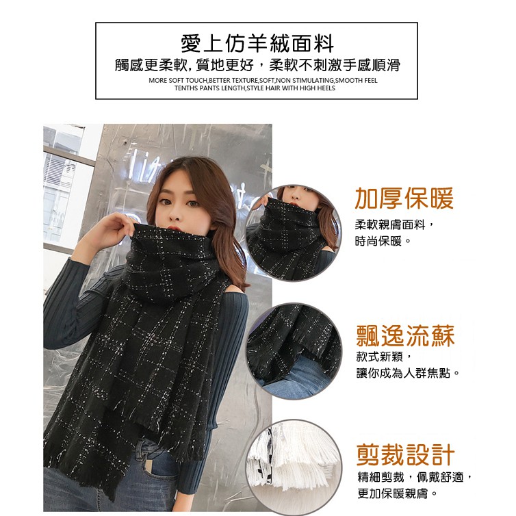 Seoul Show首爾秀 小香風格子加厚仿羊絨圍巾披肩