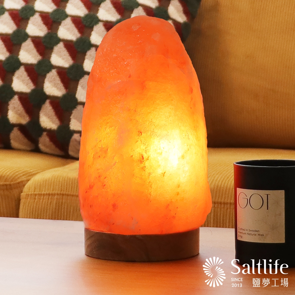 【鹽夢工場】原礦系列-玫瑰鹽燈(5-6kg|原木座)|鹽燈 鹽燈風水擺飾 小夜燈 鹽燈燈泡 鹽燈專用電線