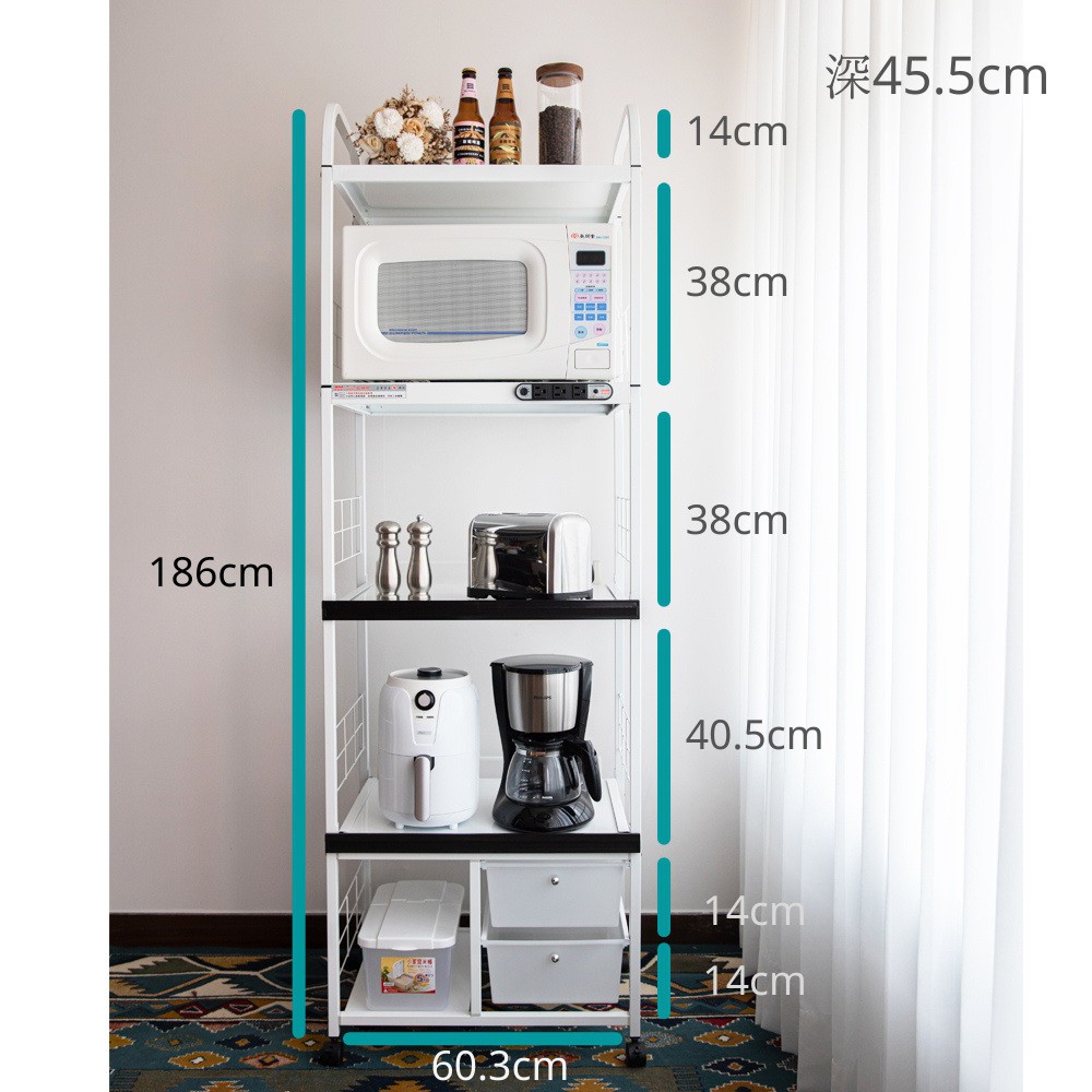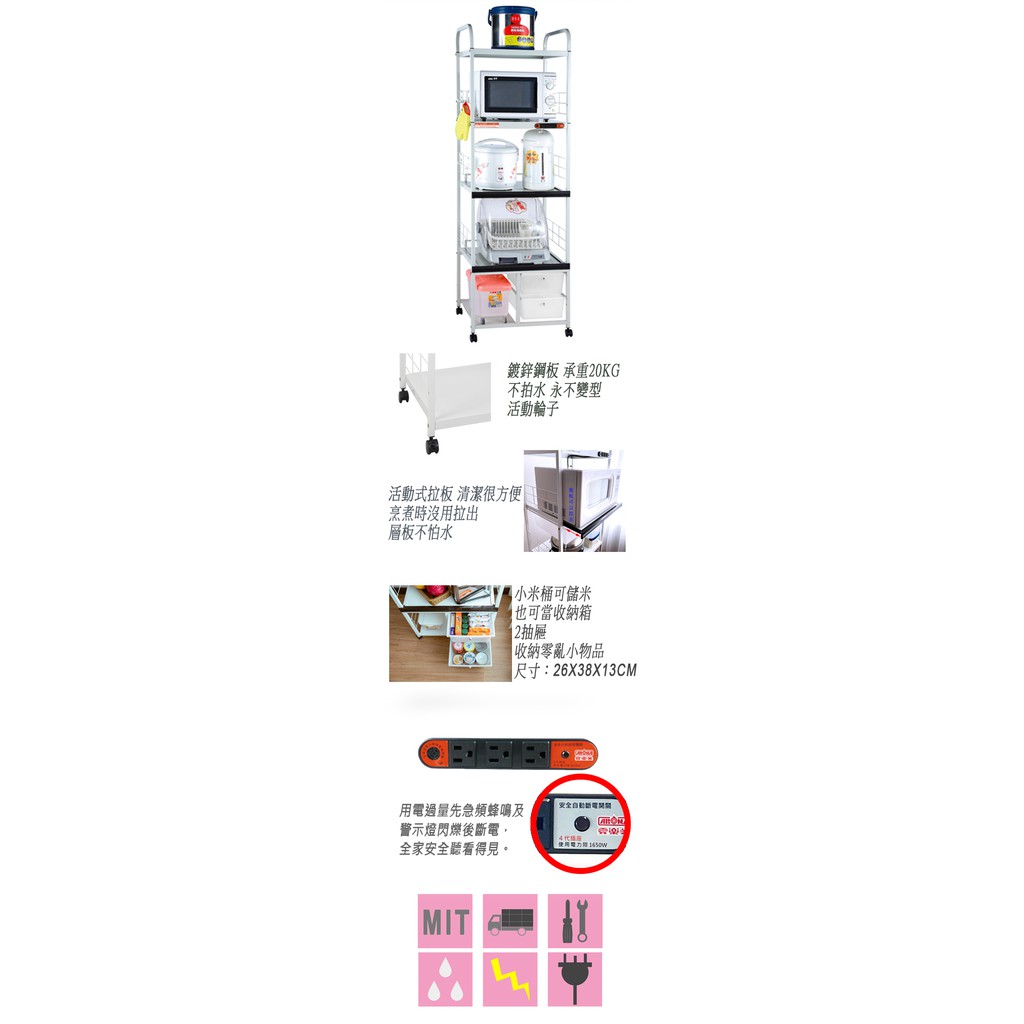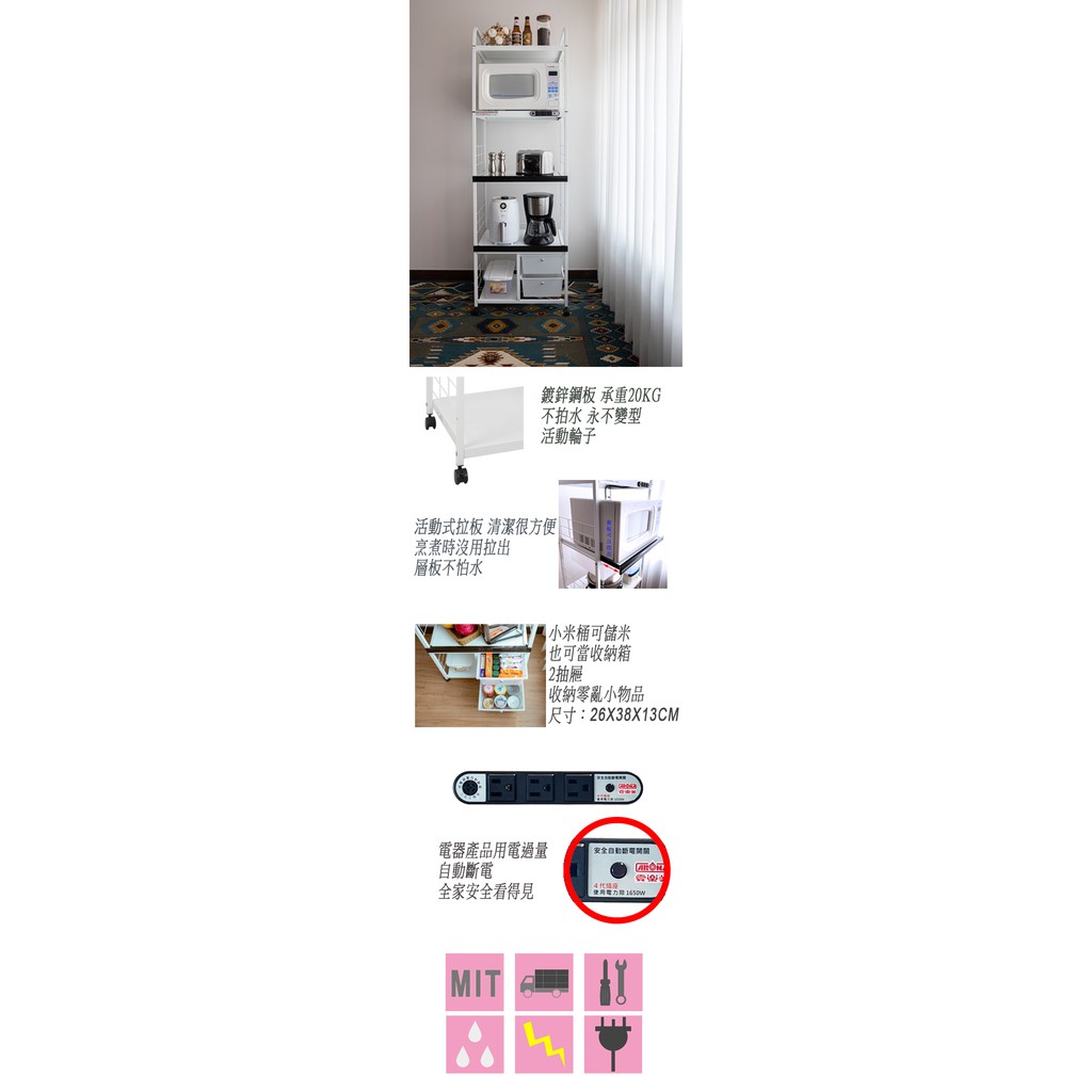 愛樂美 台灣製現貨用電過量自動斷電2拉板2抽屜米桶5層電器收納置物架