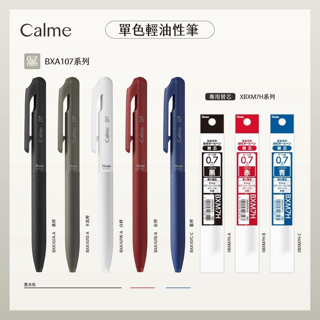 Pentel 飛龍 Calme 靜暮 輕油筆 限定色 0.5/0.7mm 黑芯 單色輕油筆 文具大賞【金玉堂文具】