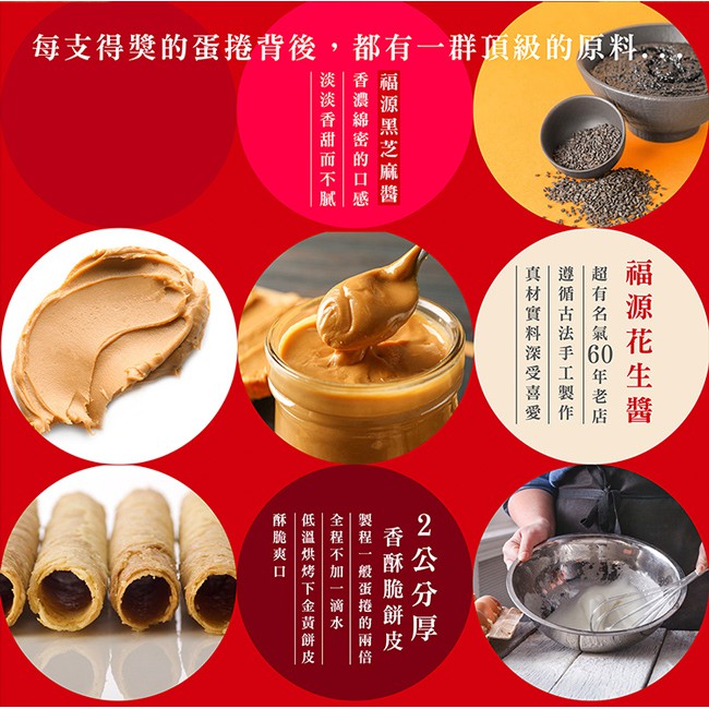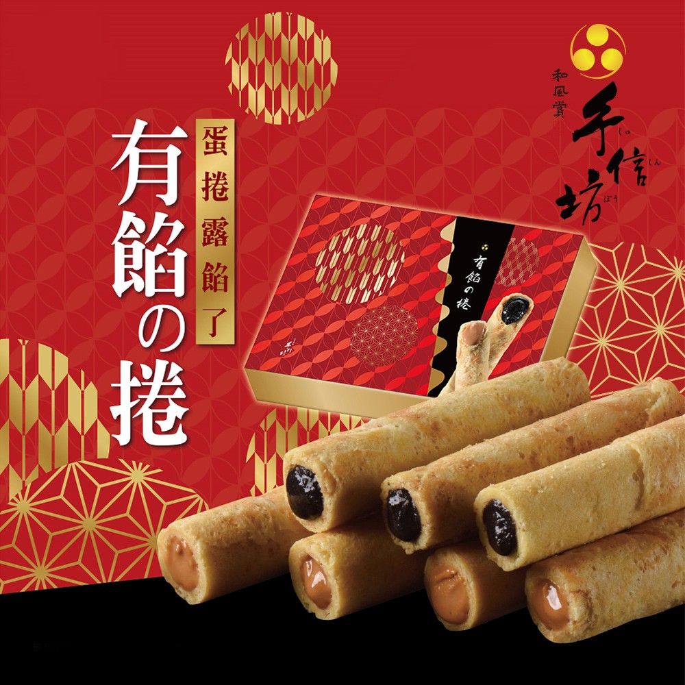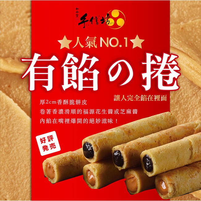【手信坊】有餡の捲禮盒 12入/盒(口味:花生味 /芝麻味)蛋素 |常溫配送 |蛋捲藏餡了! 榮獲ITQI二星獎 禮盒