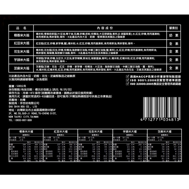 【手信坊】米大福禮盒 10入/盒 (口味:紅豆/花生/芝麻/芋頭/椰子 ) 奶素全素 | 冷凍配送 | 禮盒