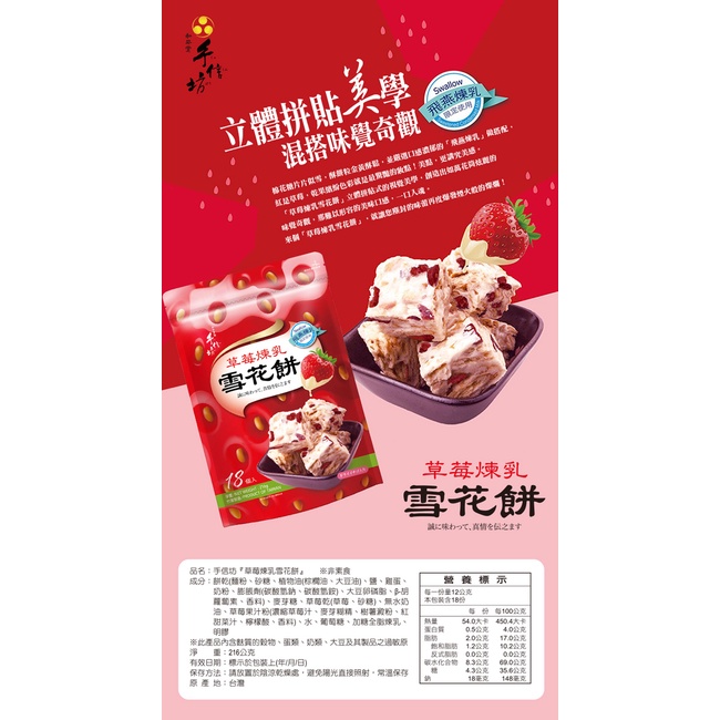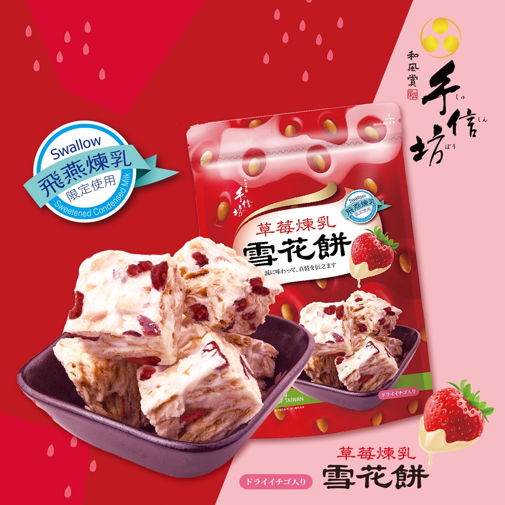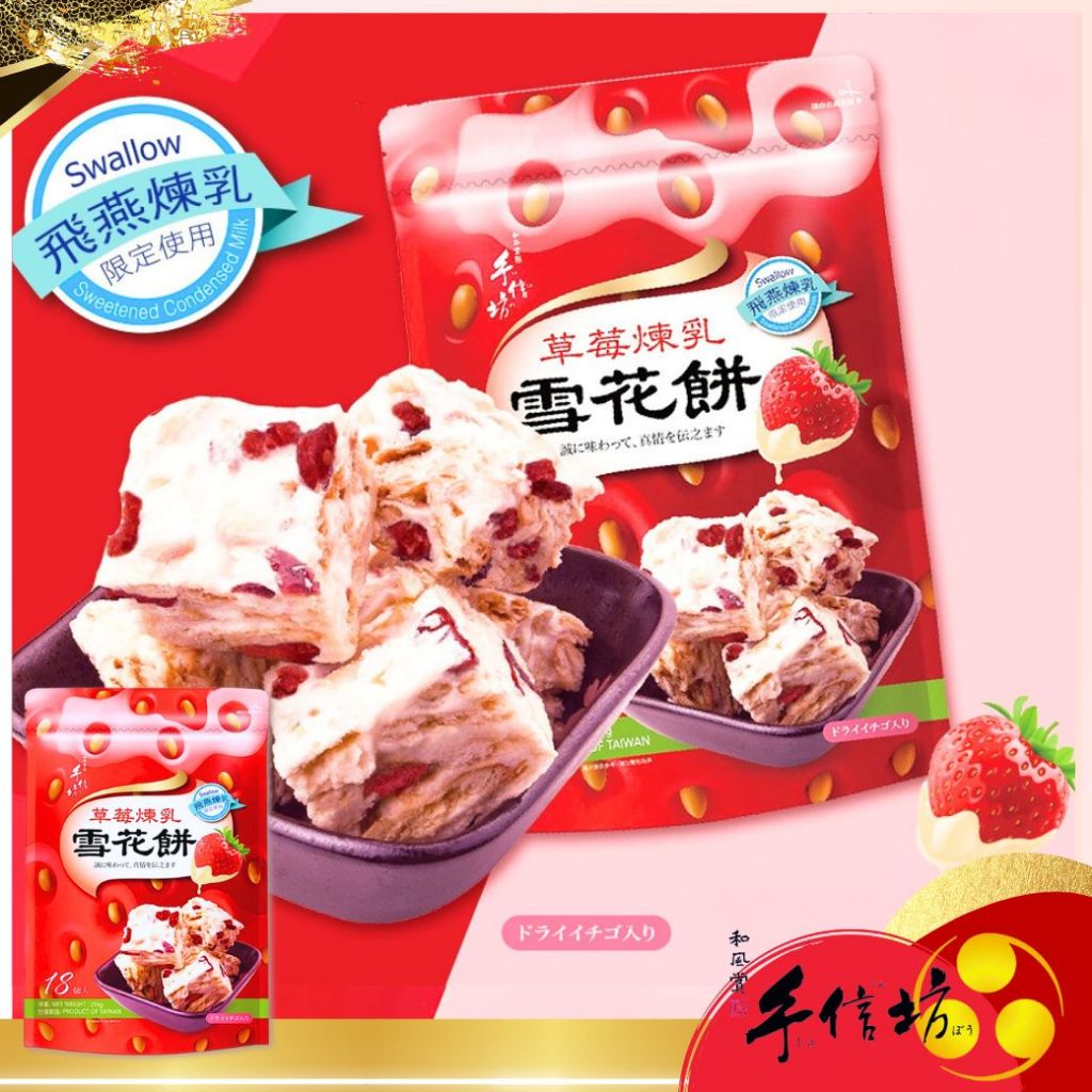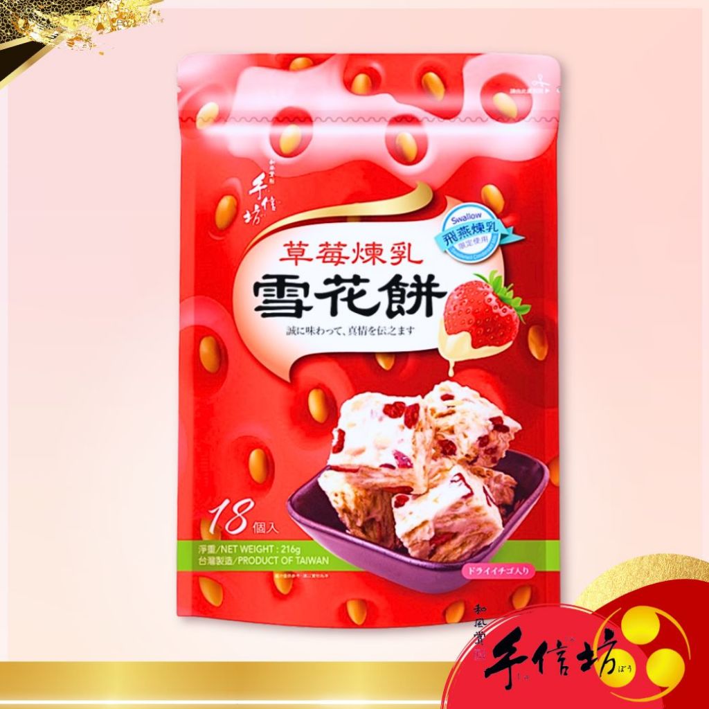 【手信坊】草莓煉乳雪花餅 216g/包 葷食 | 常溫配送 | 強強聯手 飛燕煉乳 限定使用