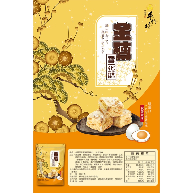 【手信坊】金磚雪花酥 15入/包 (鹹蛋黃口味) 葷食 | 常溫配送 | 好評上市~人手一袋 袋裝