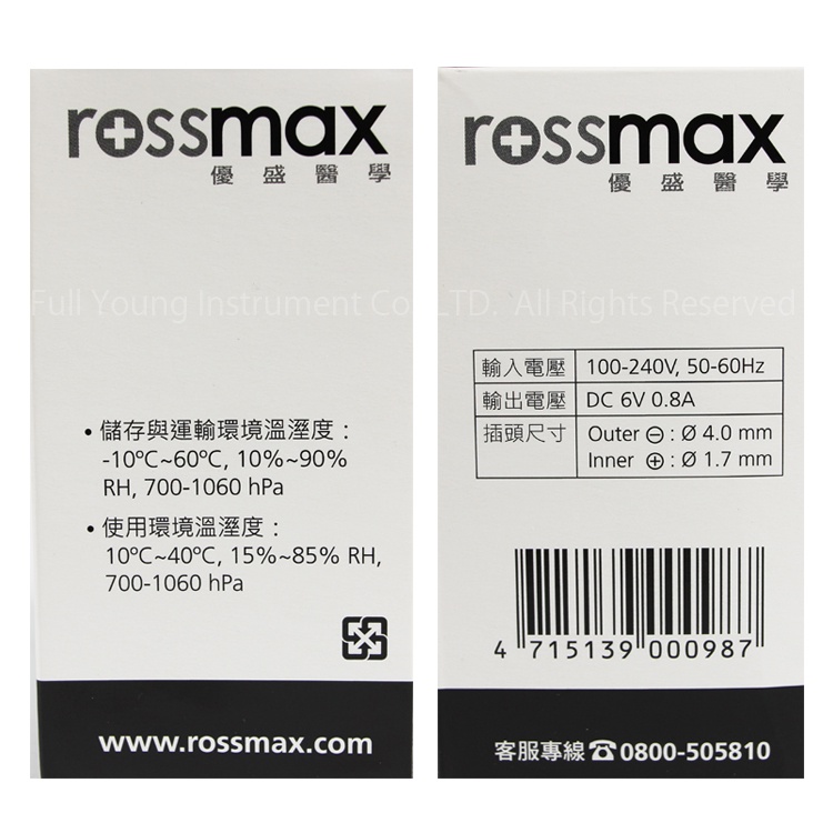 ROSSMAX 血壓計專用變壓器 6V/12V(優盛血壓計專用)【醫康生活家】