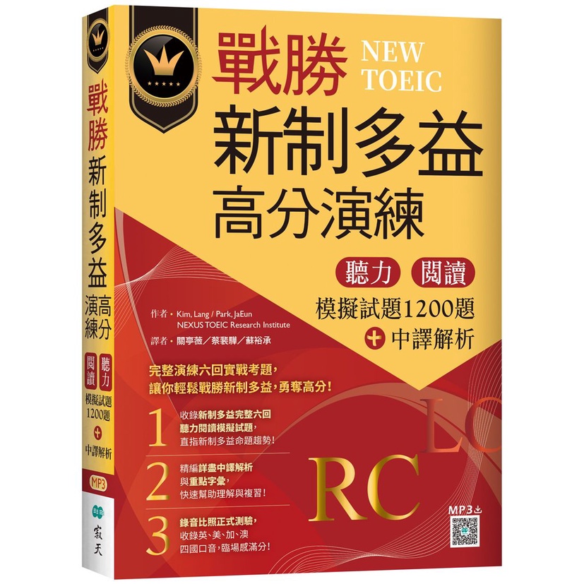 戰勝新制多益高分演練:聽力閱讀模擬試題1200題+中譯解析【試題+中譯解析雙書裝】(16K+寂天雲隨身聽APP)<啃書>
