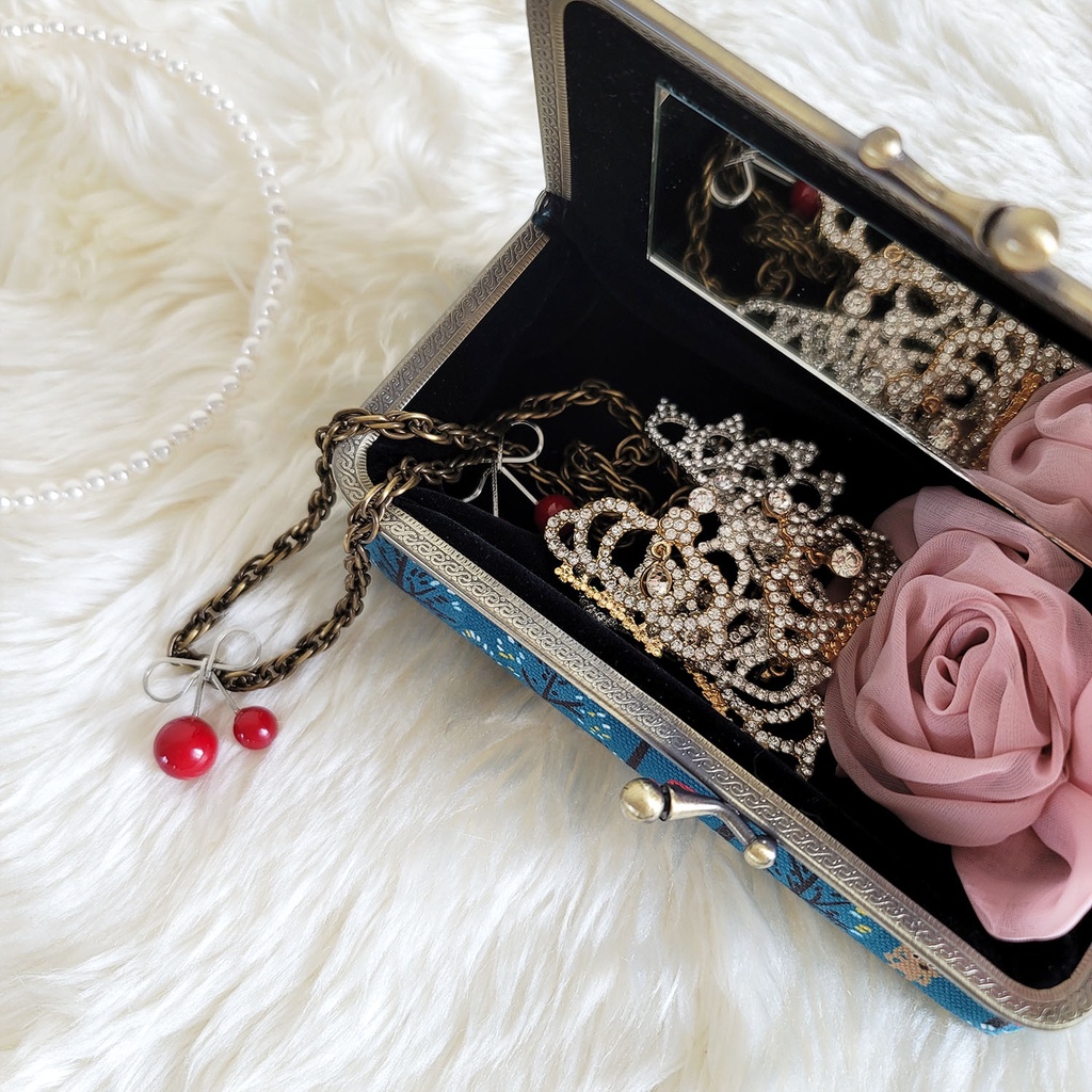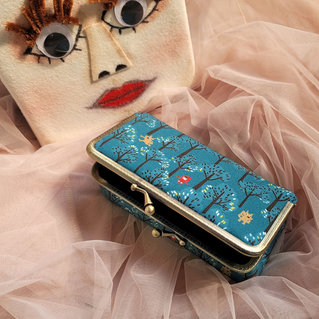 BoingBoing 鏡子 口金包 化妝盒 珠寶盒 化妝包 首飾盒 手繪印花 畢業禮物 - 森林裡捉迷藏水鴨藍